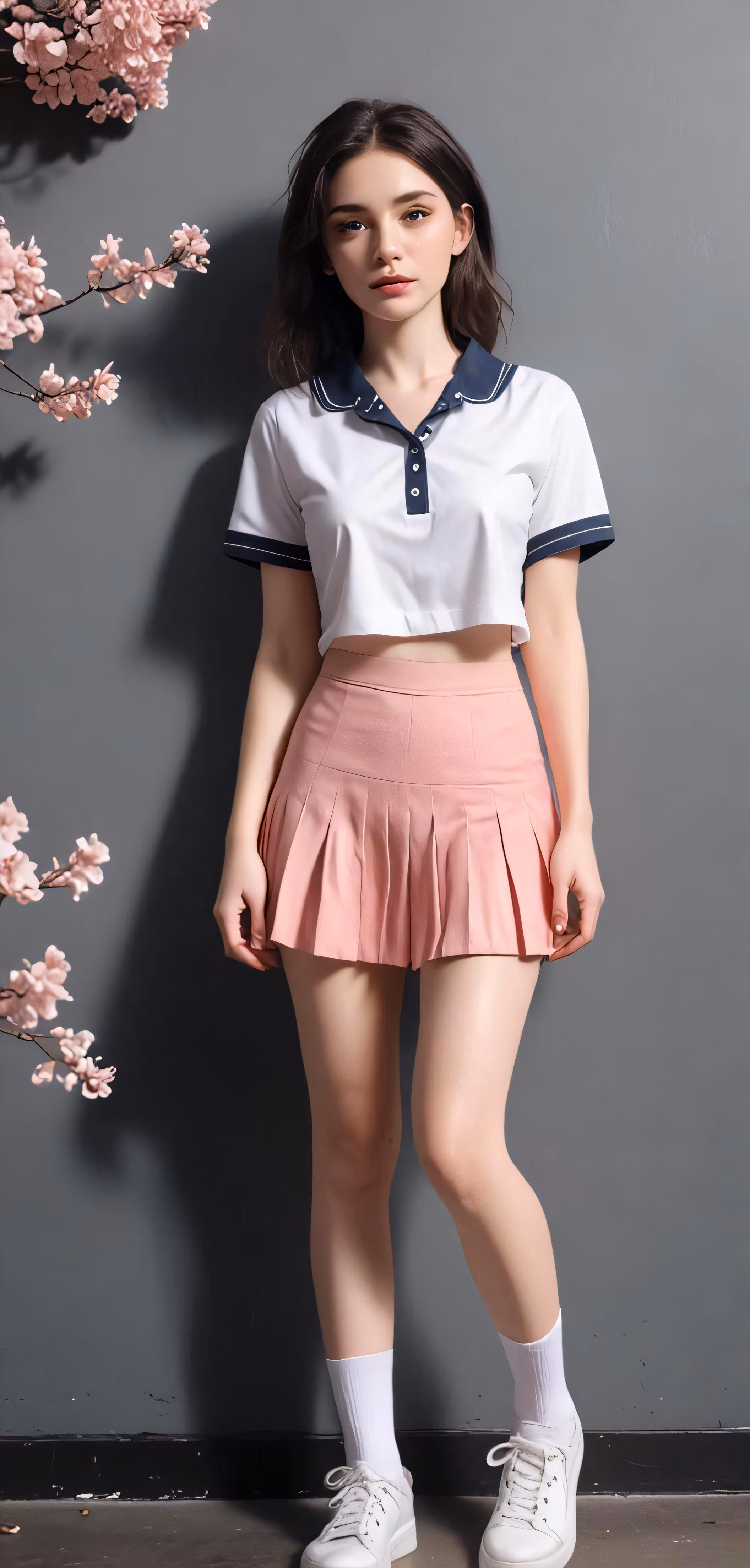 High resolution picture, free to use, a girl wearing white shoes standing by a flower