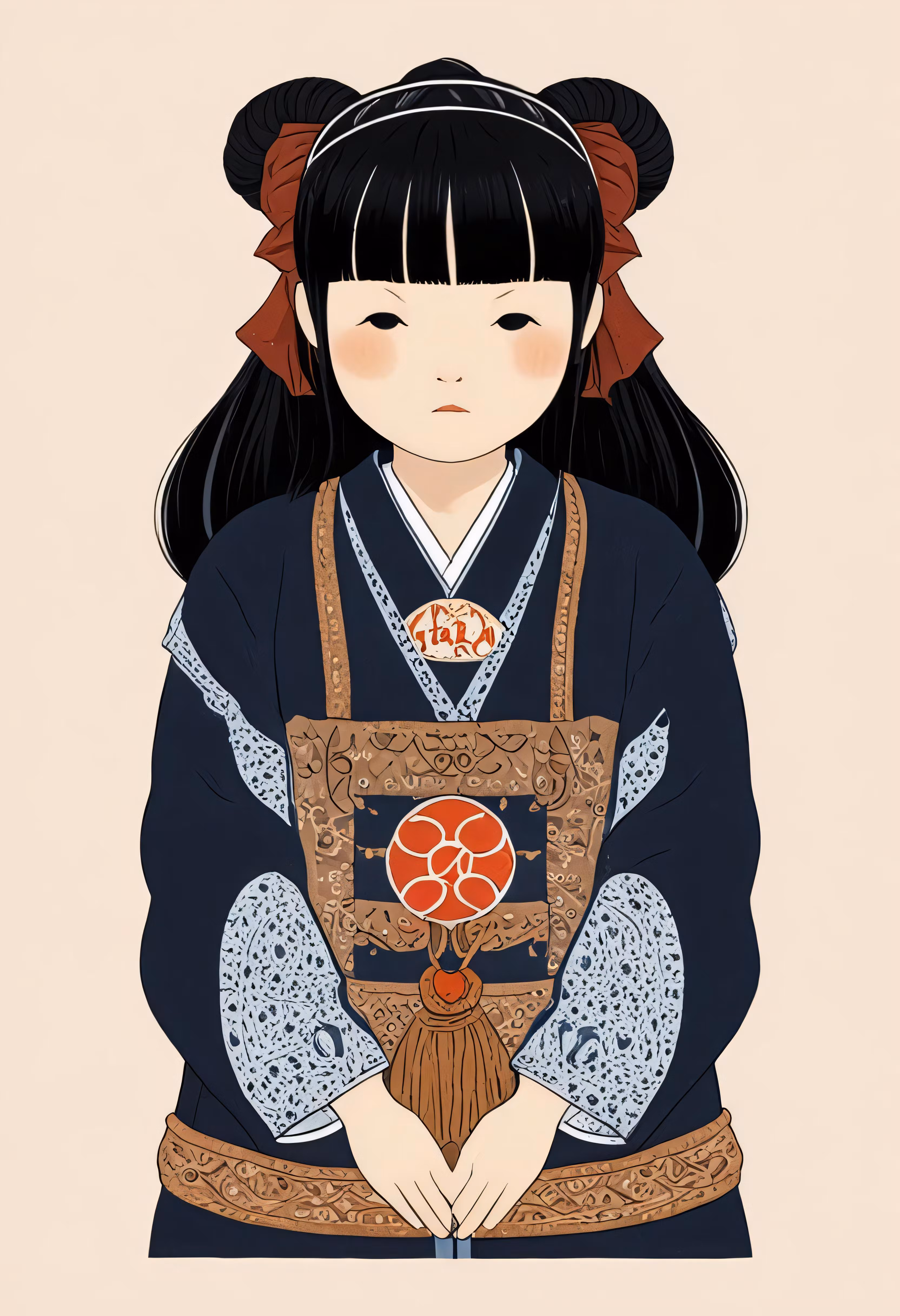 High resolution picture, free to use, a girl with a geisha holding an orange flower