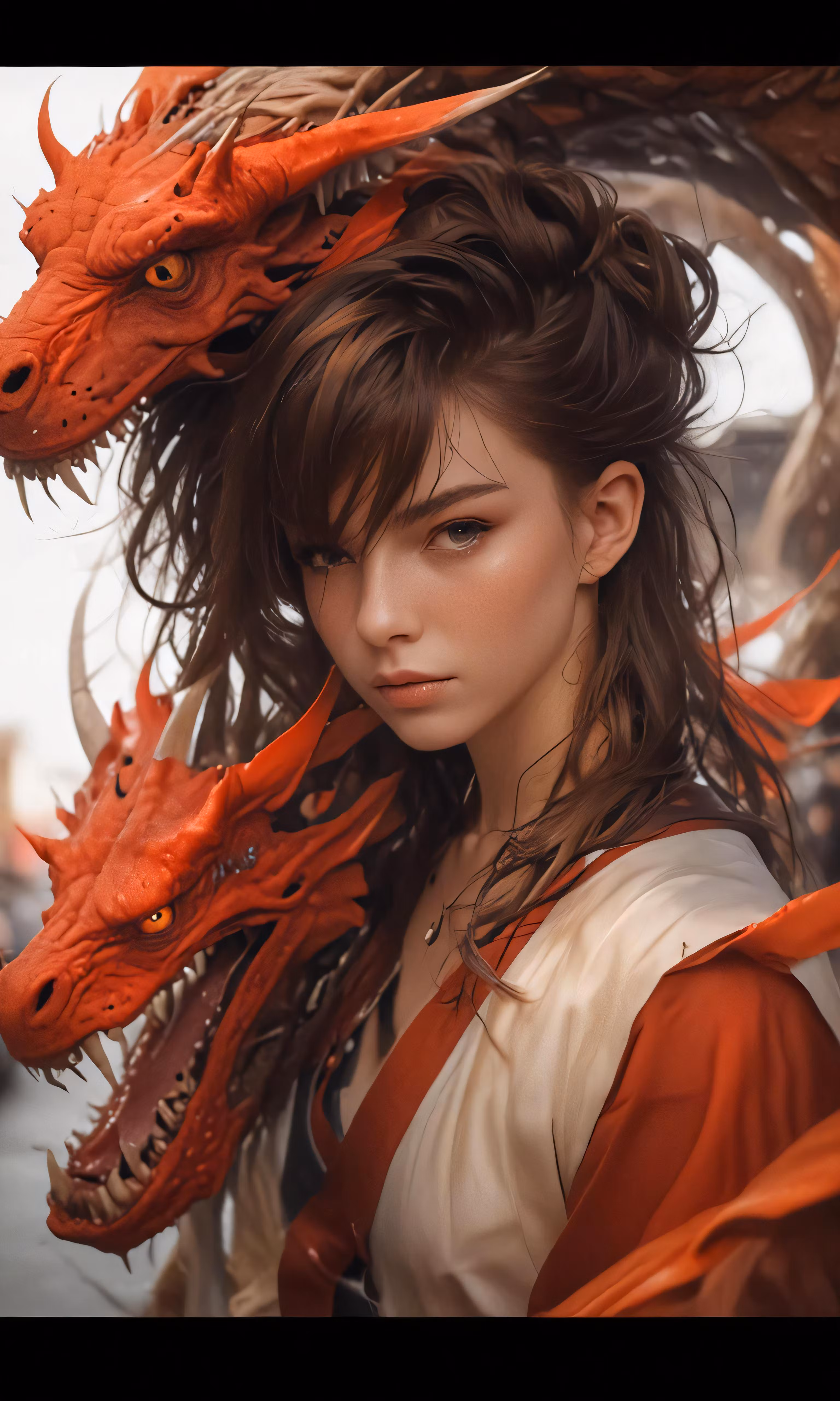 High resolution picture, free to use, a girl with a red dragon head in the background