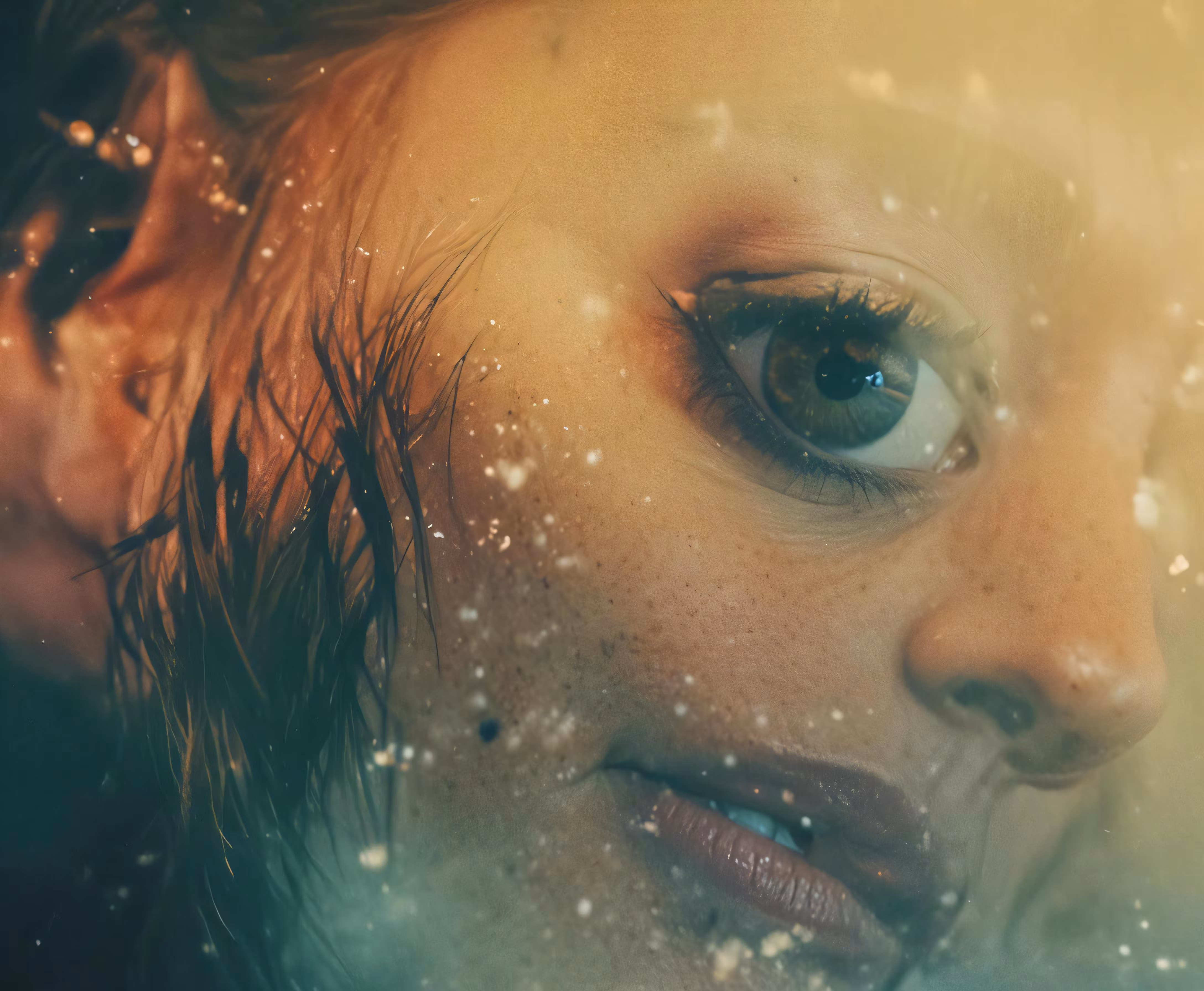 High resolution picture, free to use, a girl with a wet hair stares at the camera