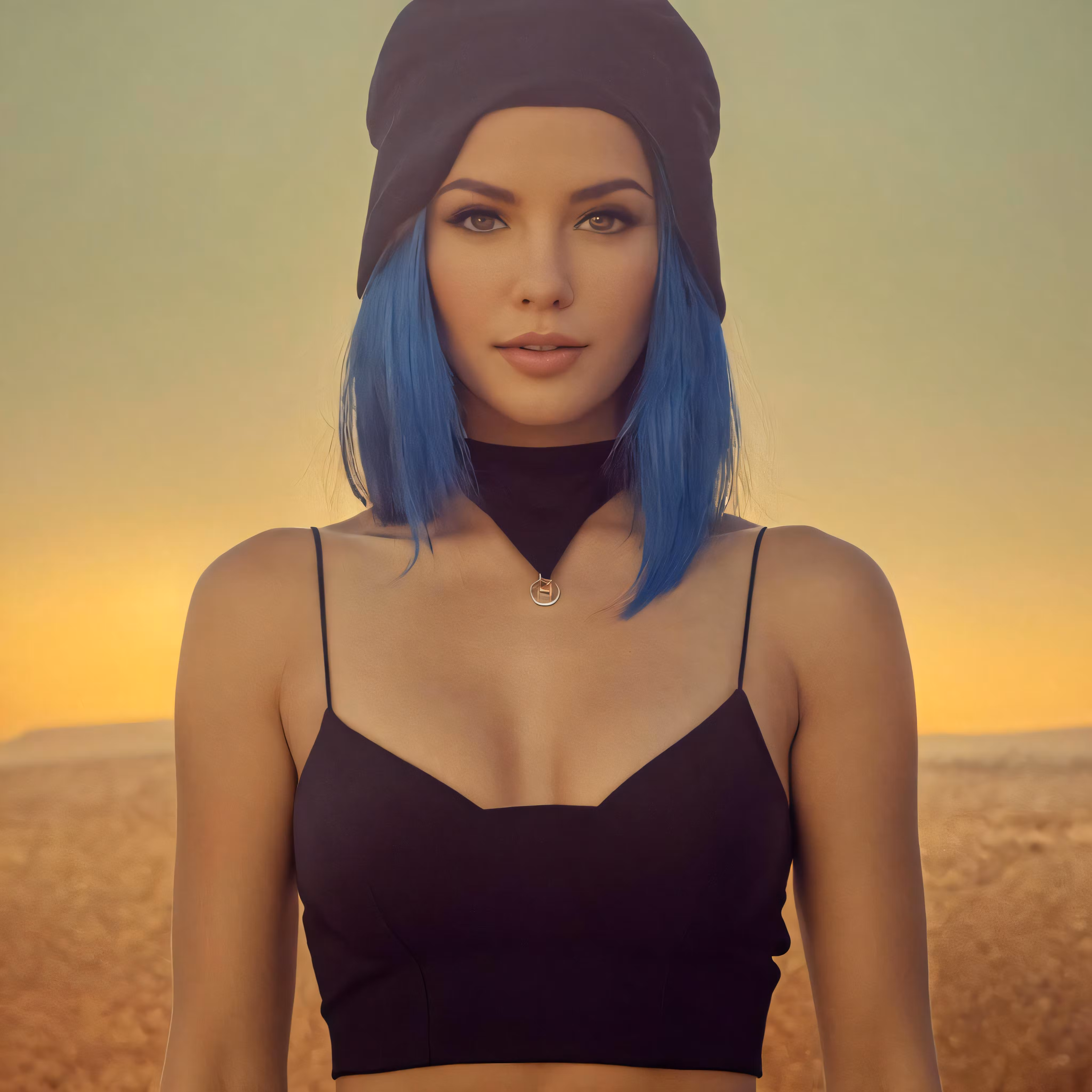 High resolution picture, free to use, a girl with blue hair and a black shirt