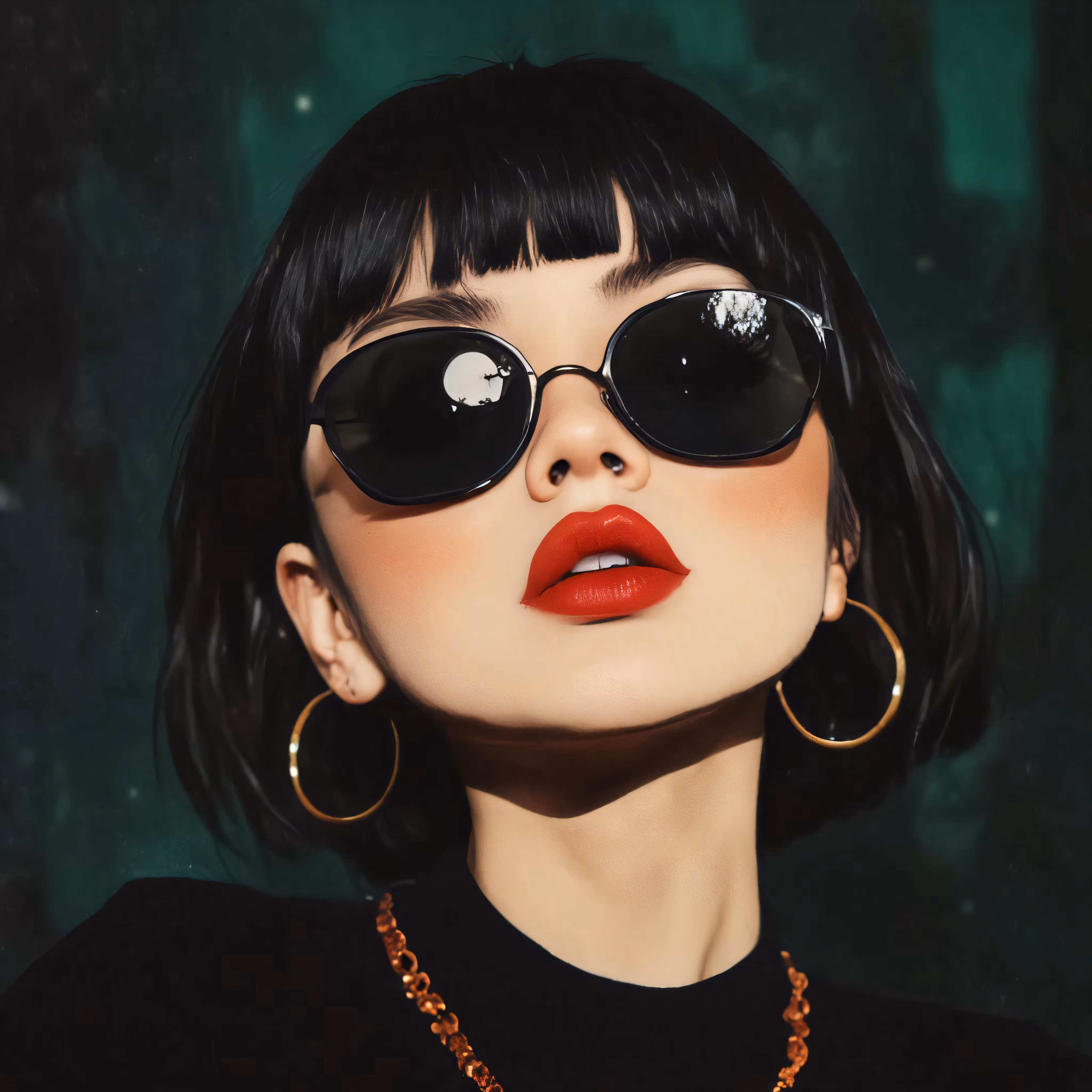 High resolution picture, free to use, a girl with glasses on wearing a necklace