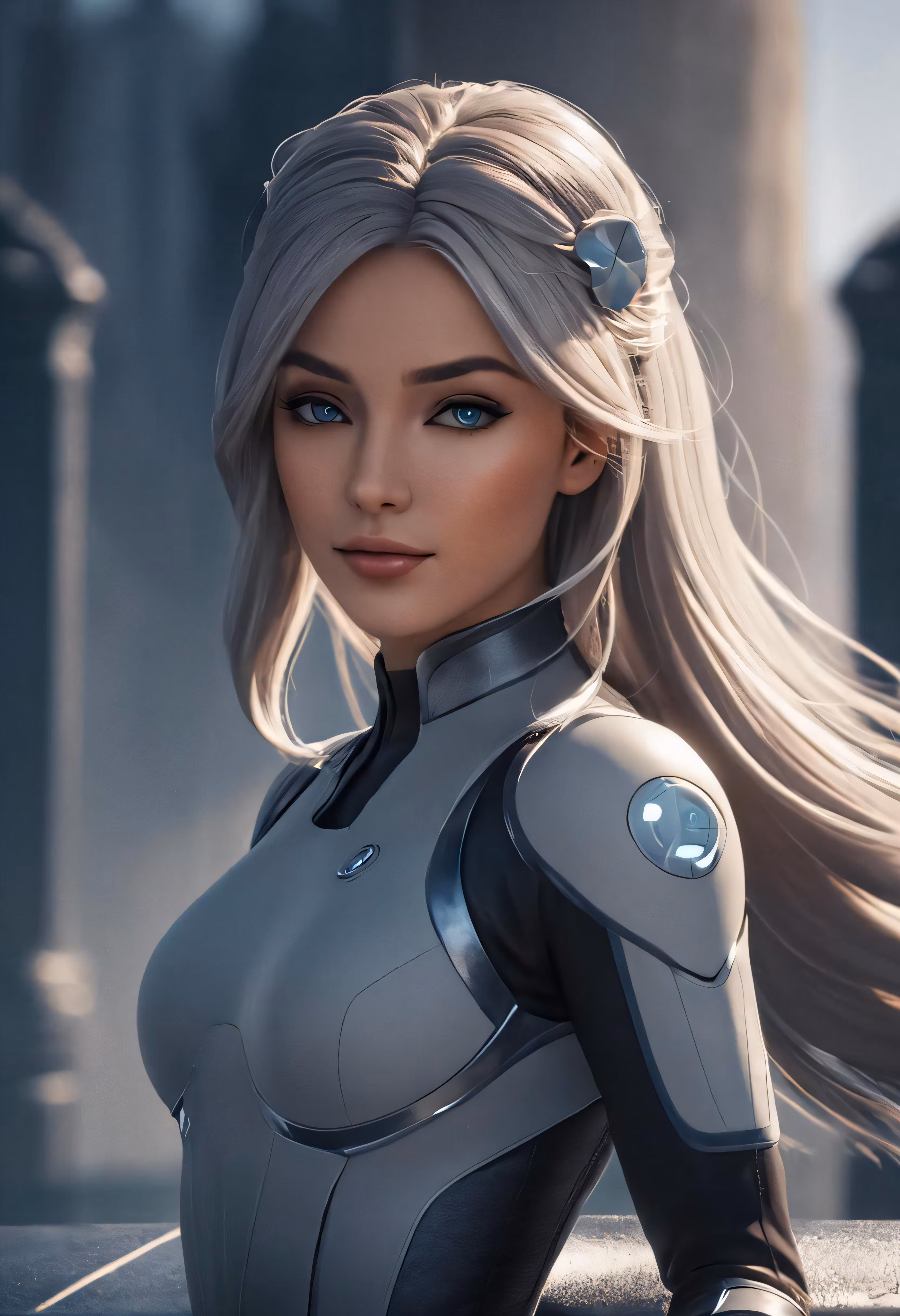 High resolution picture, free to use, a girl with grey hair is shown in front of a dark background
