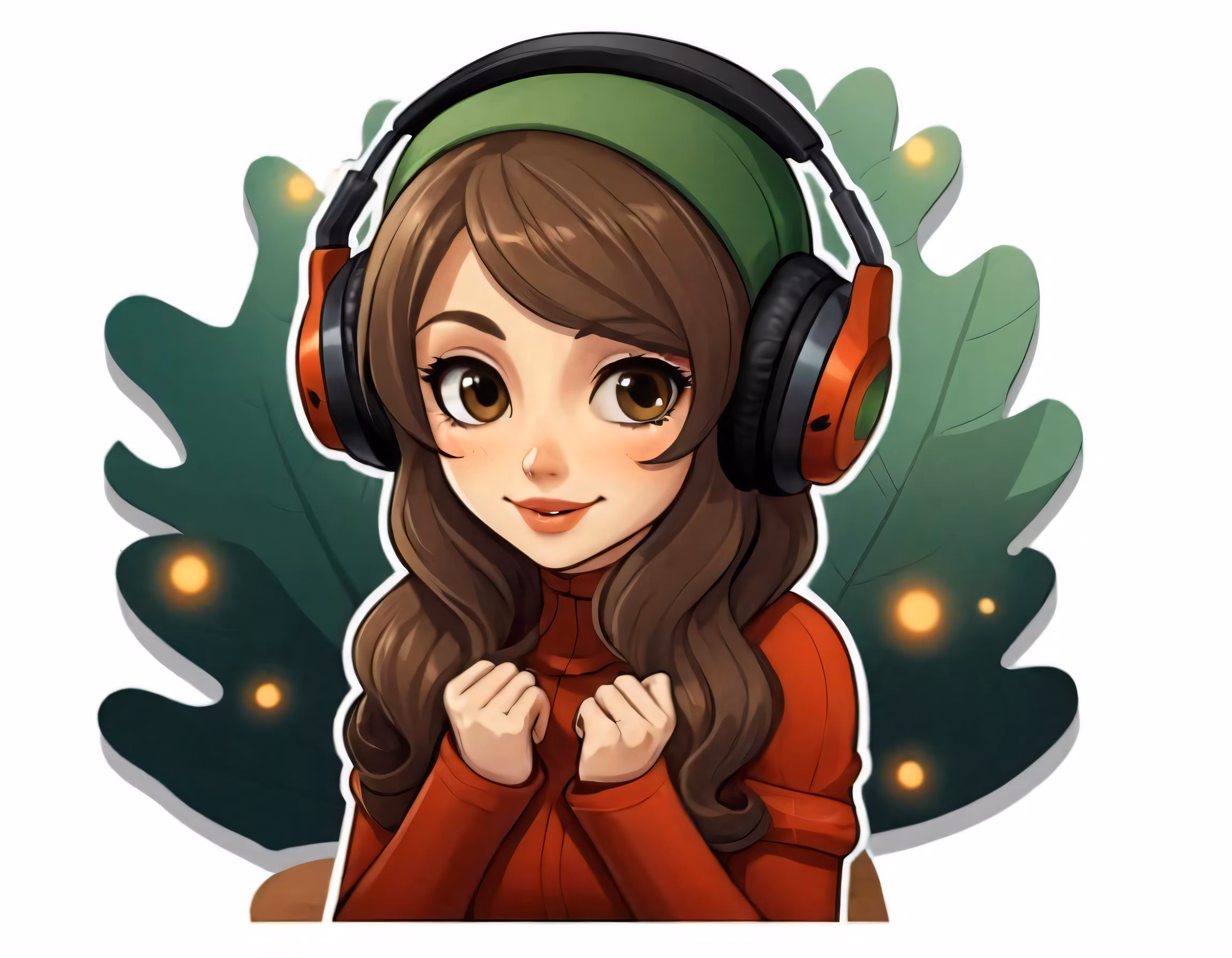High resolution picture, free to use, a girl with headphones standing in front of trees