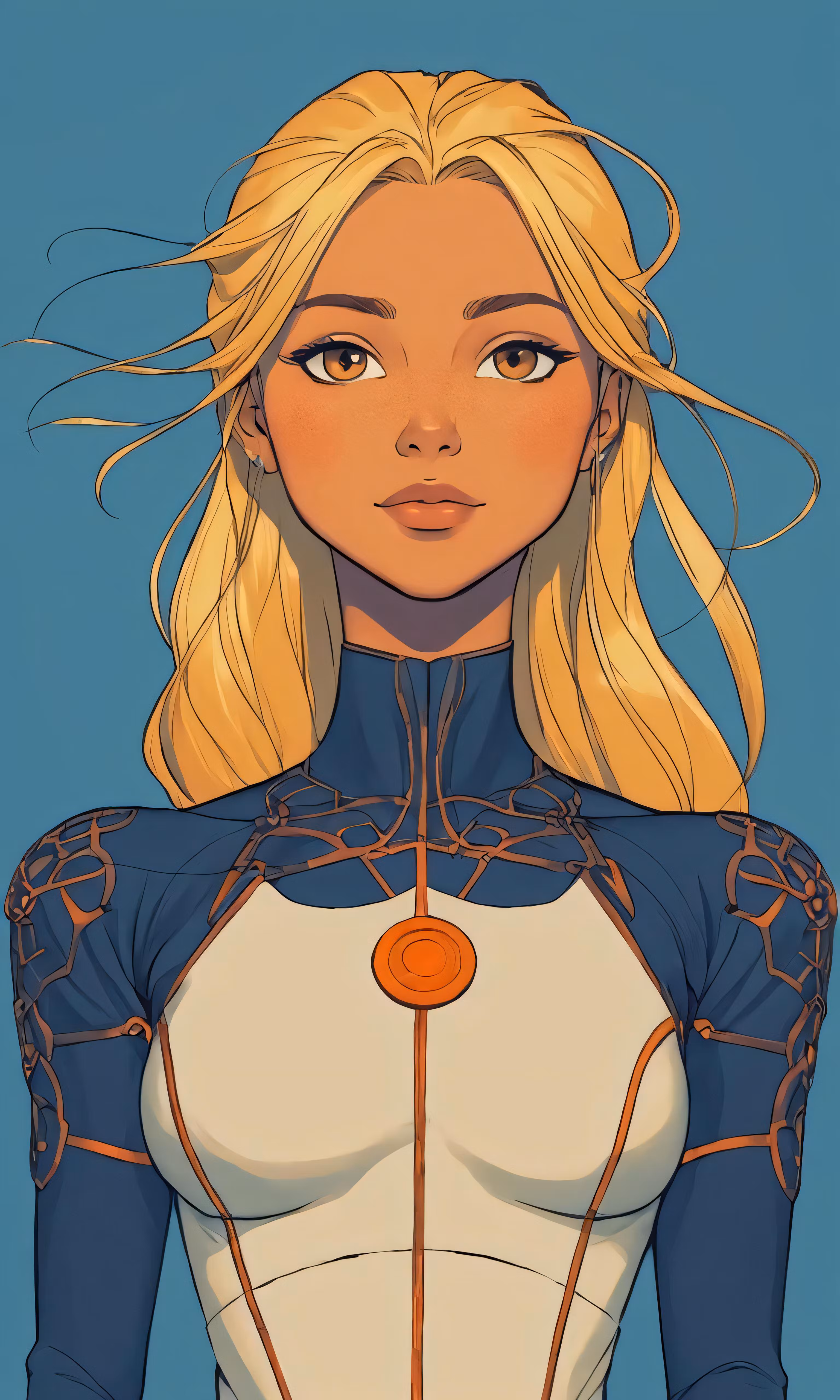 High resolution picture, free to use, a girl with long blonde hair is standing in front of a blue background