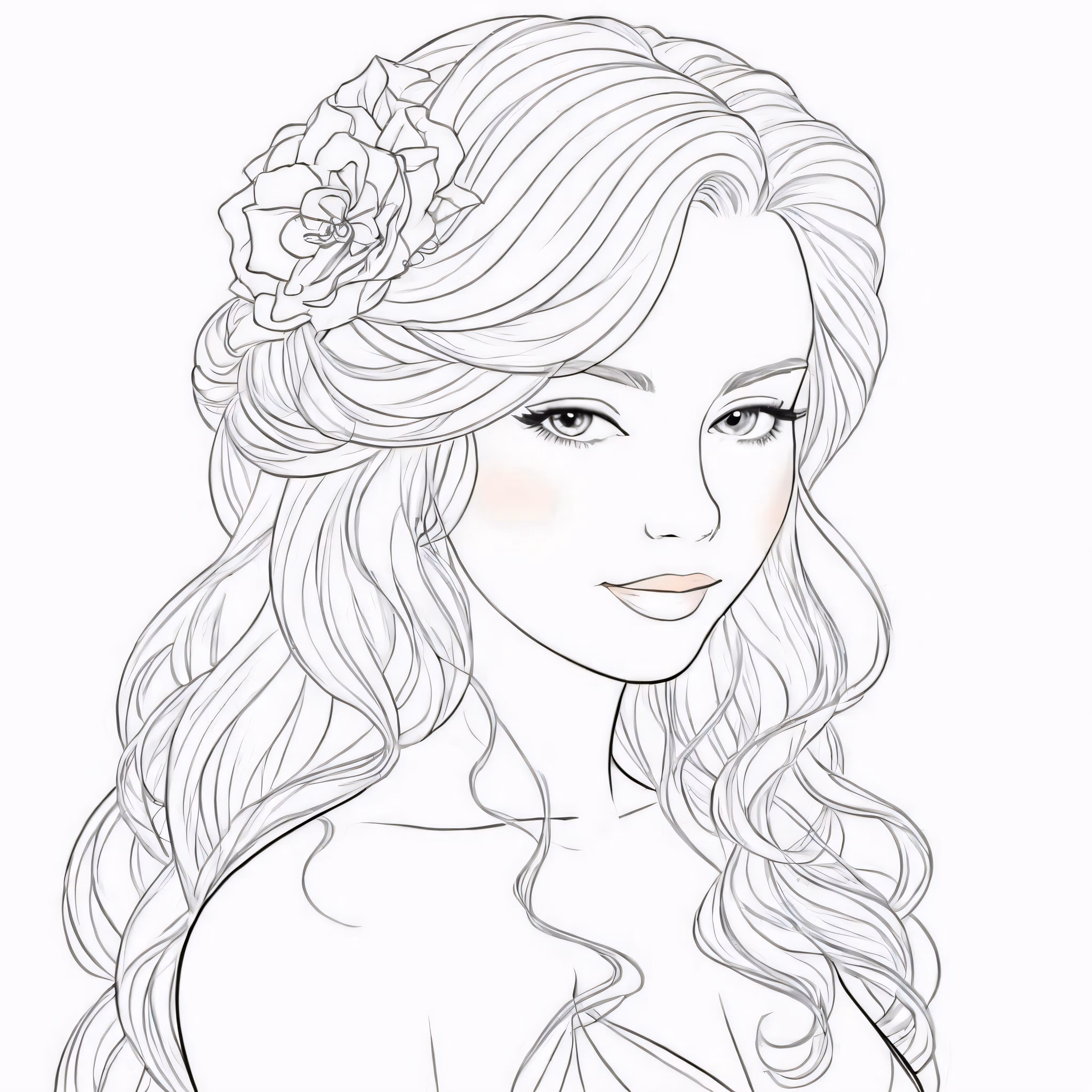 High resolution picture, free to use, a girl with long curly hair and flowers in her hair