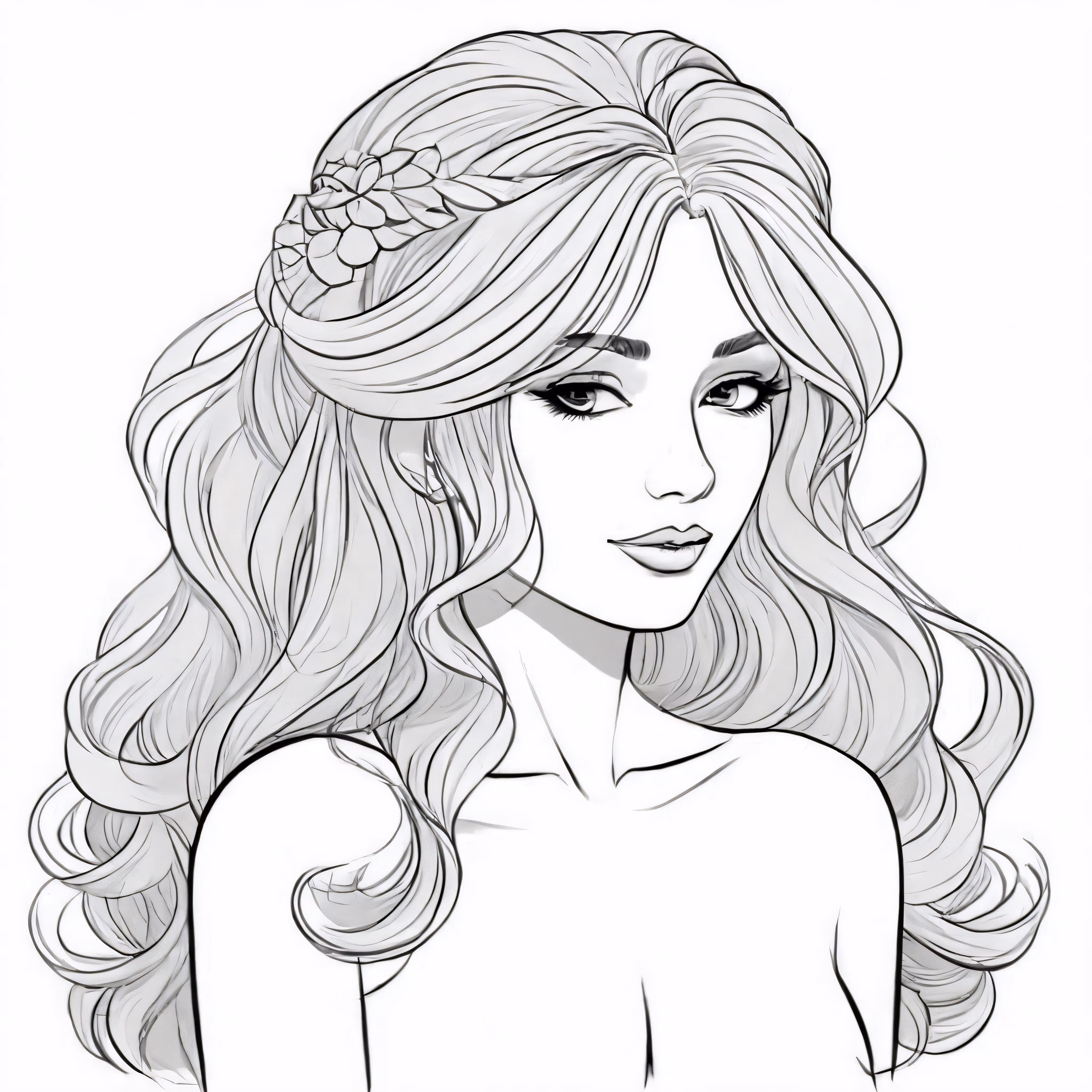 High resolution picture, free to use, a girl with long hair and flowers in her hair
