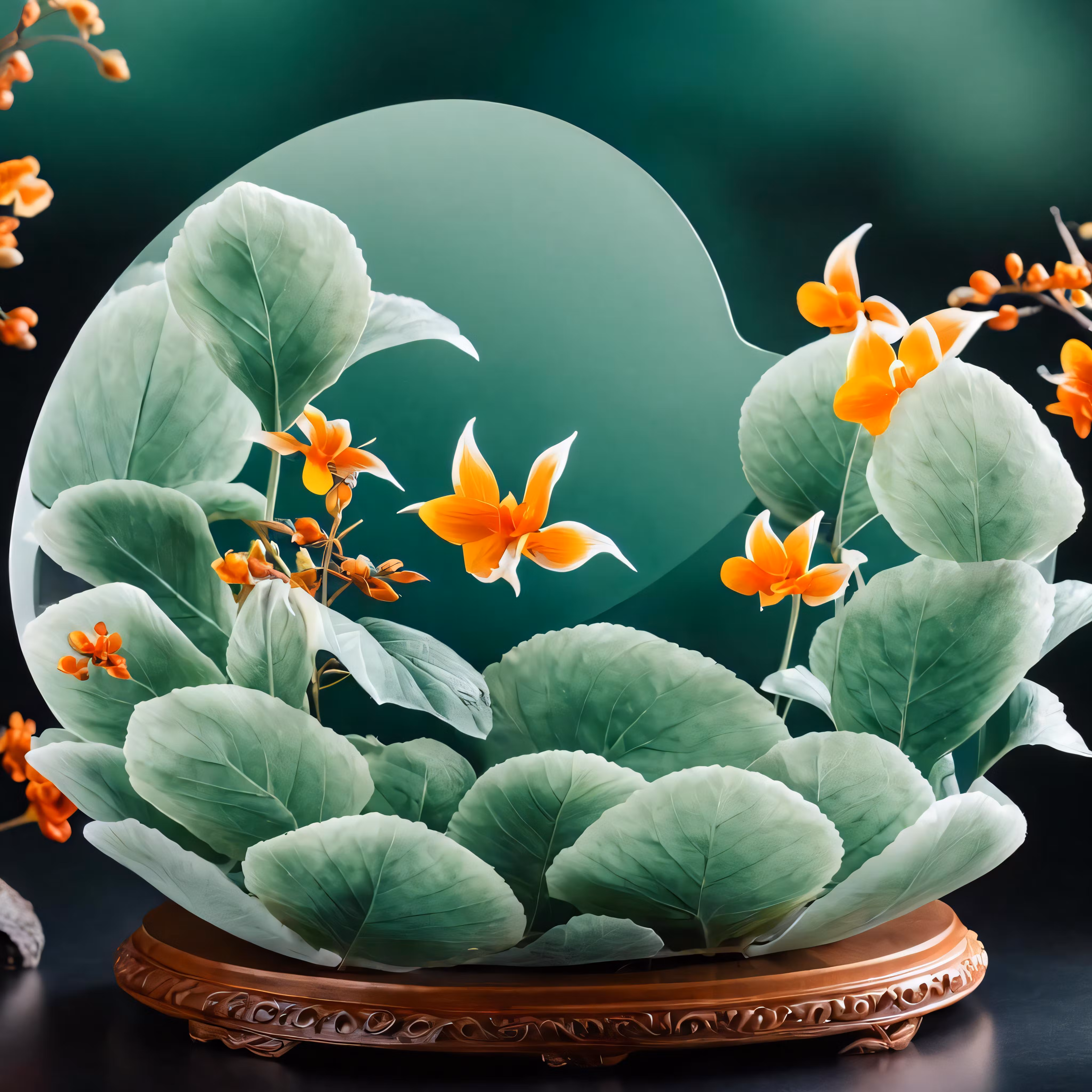High resolution picture, free to use, a glass ball covered in flowers and leaves