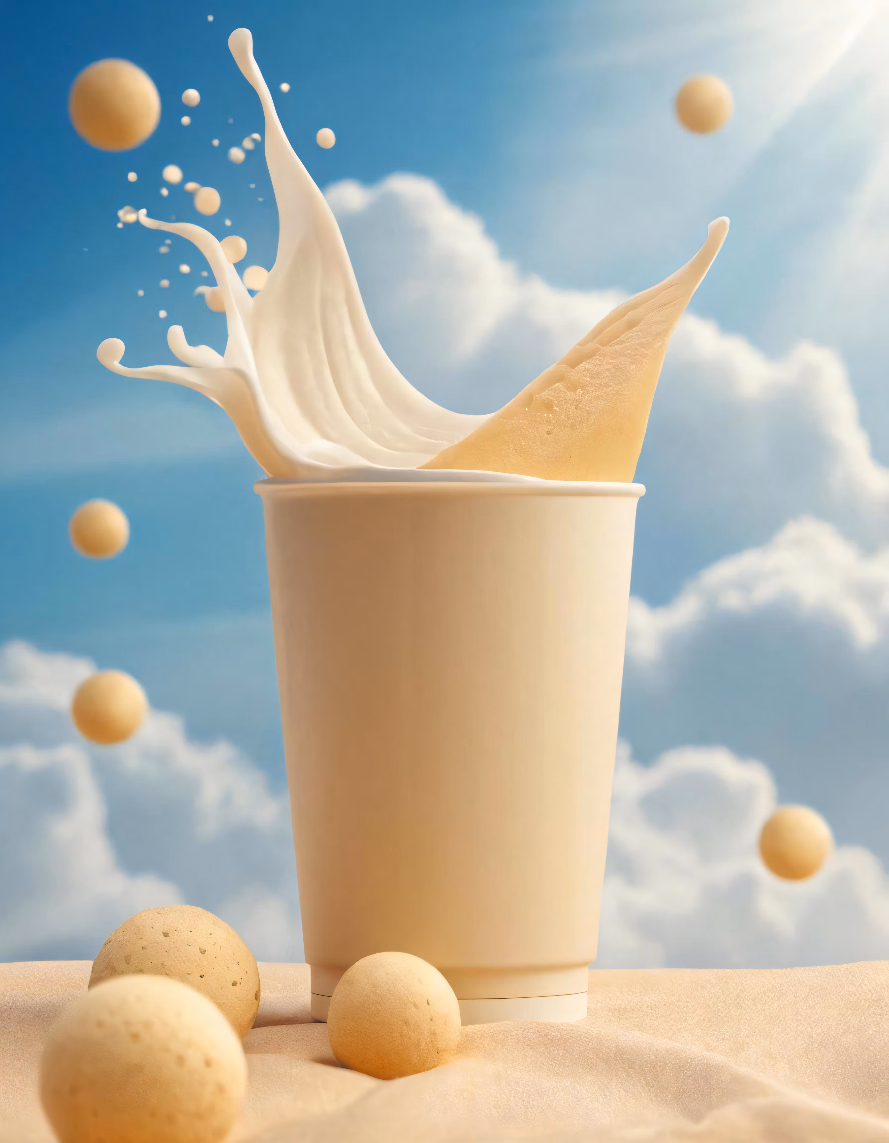 High resolution picture, free to use, a glass of milk falling out of it next to eggs