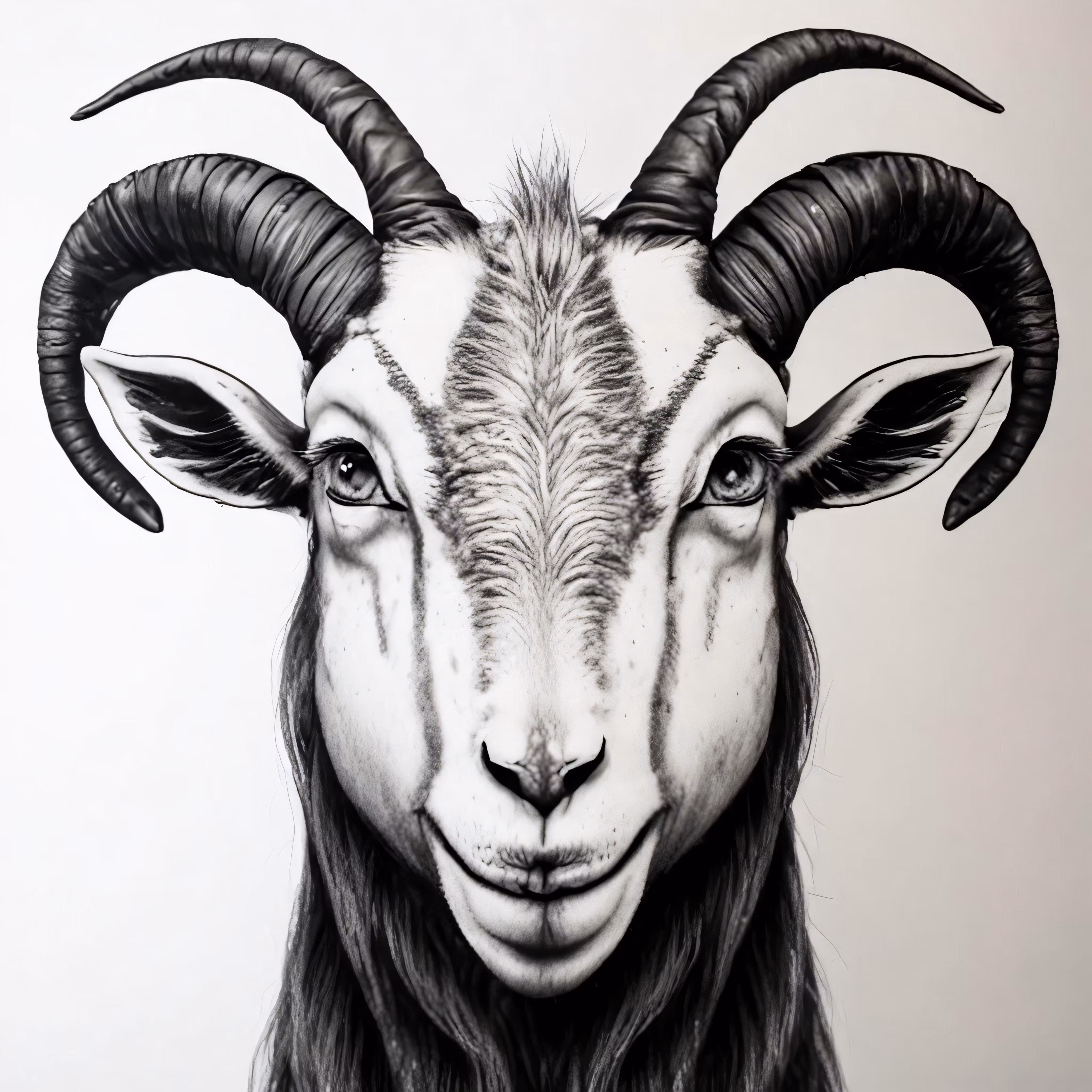 High resolution picture, free to use, a goat head with large horns painted on it