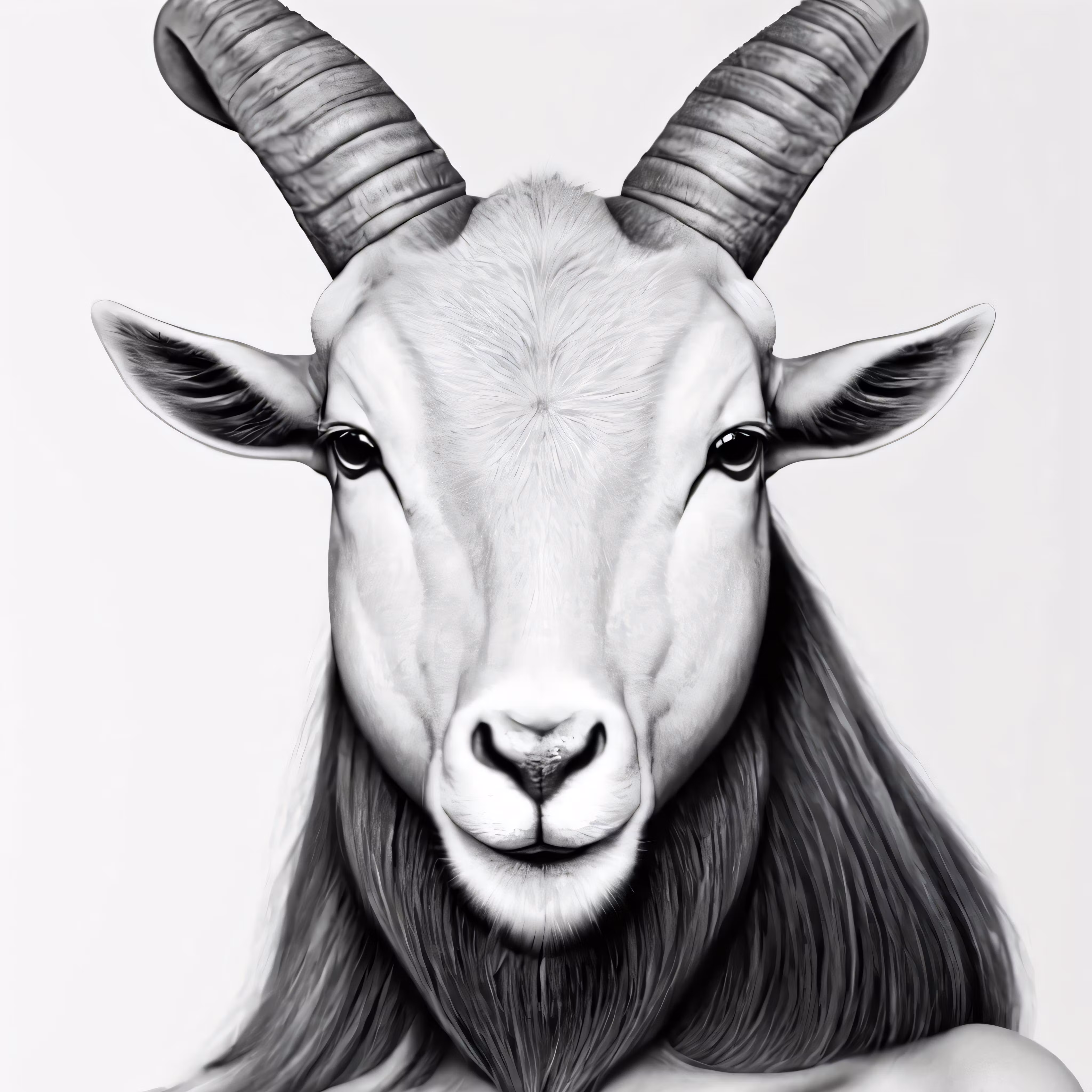 High resolution picture, free to use, a goat that is wearing horns with long hair