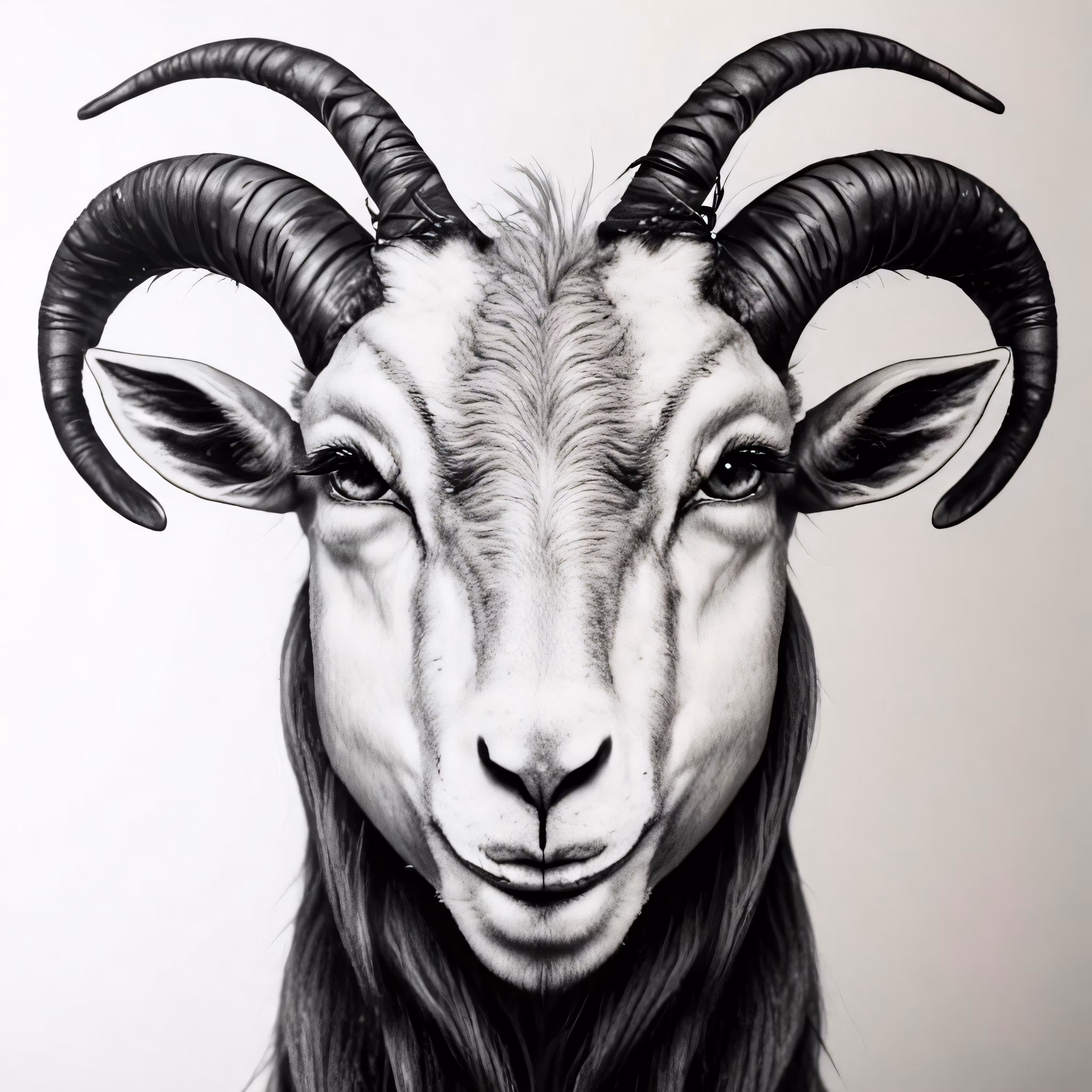 High resolution picture, free to use, a goat with long horns on a white background