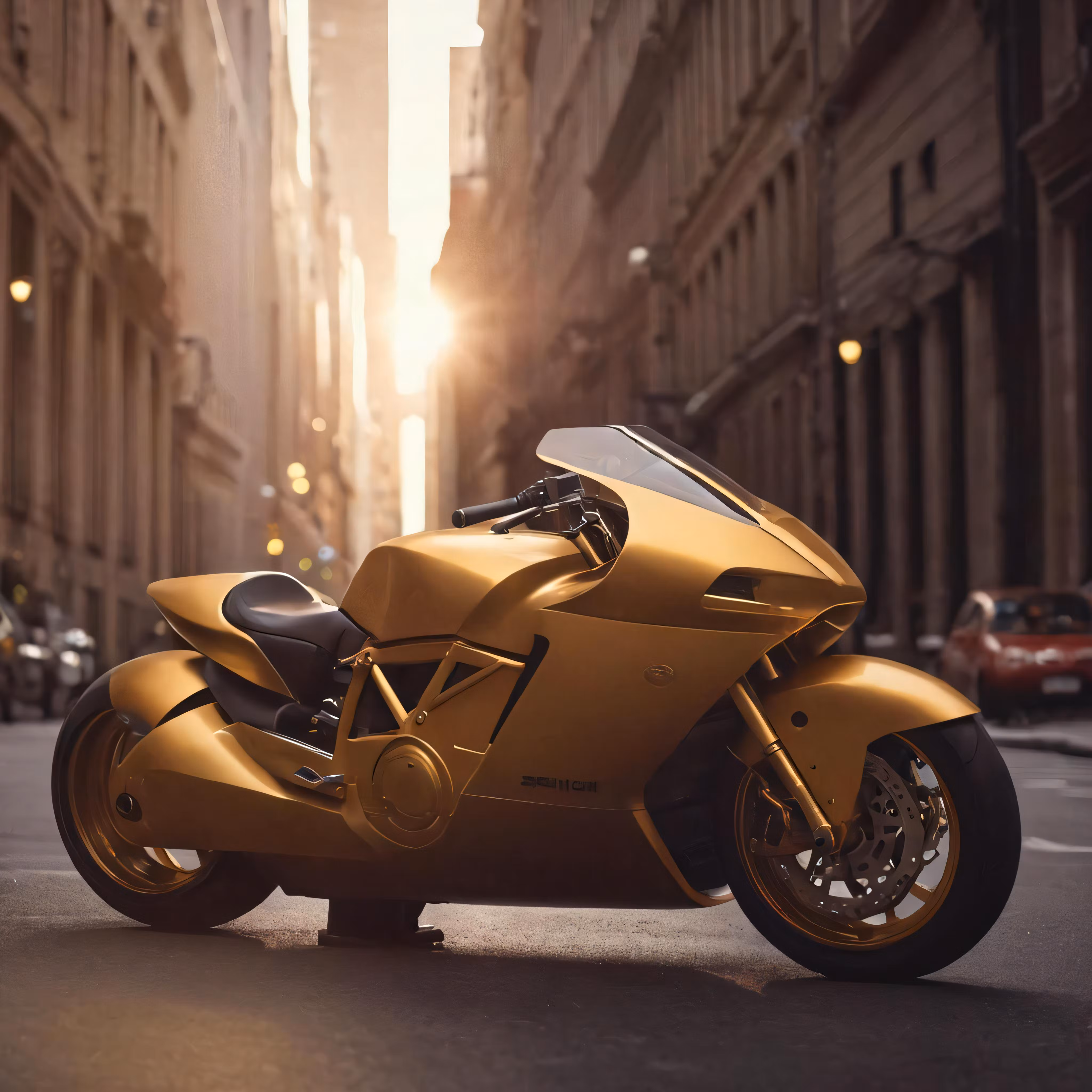 High resolution picture, free to use, a gold sports motorcycle on the city streets