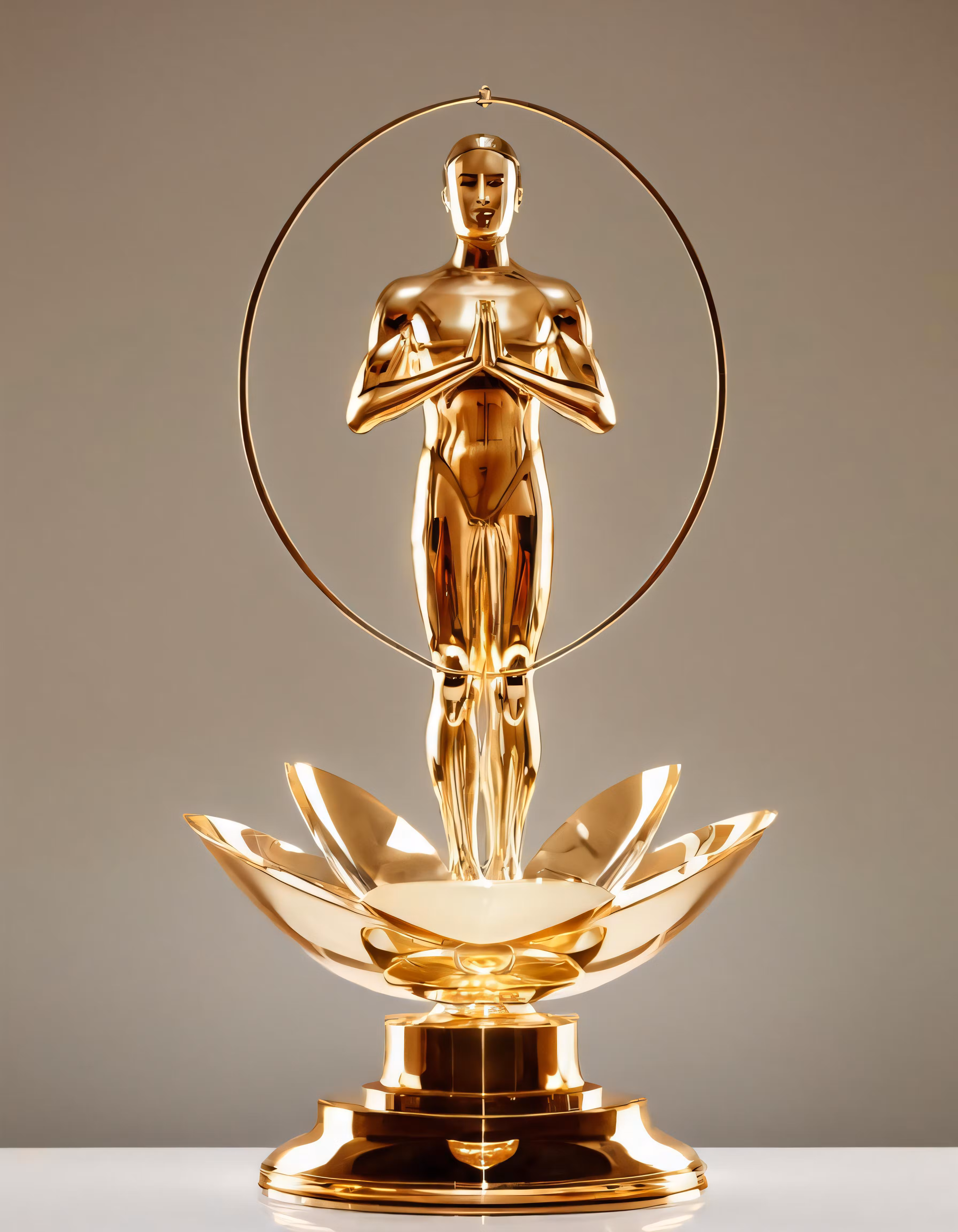 High resolution picture, free to use, a gold statue of a man in the center of a flower