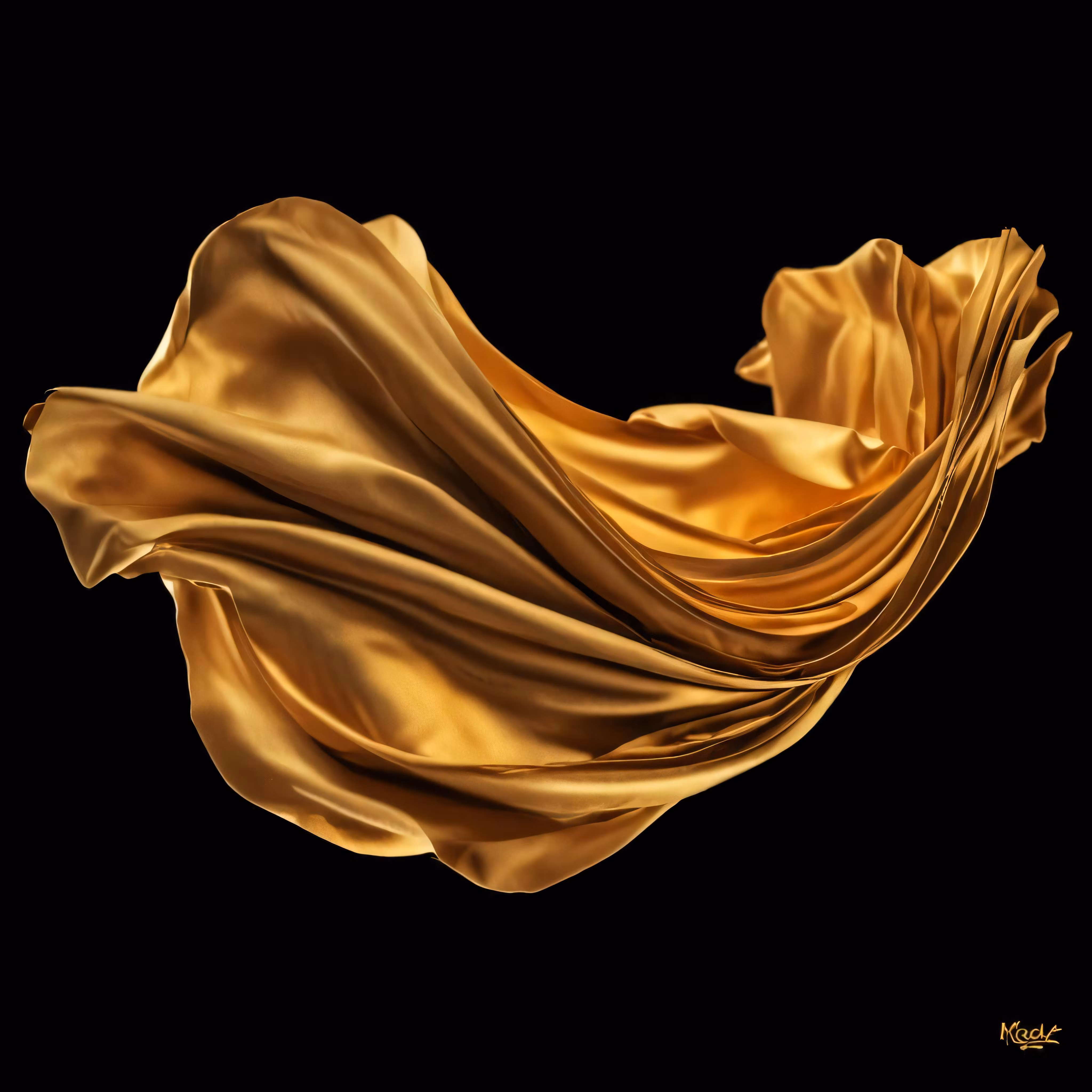 High resolution picture, free to use, a golden draped cloth flying in the air
