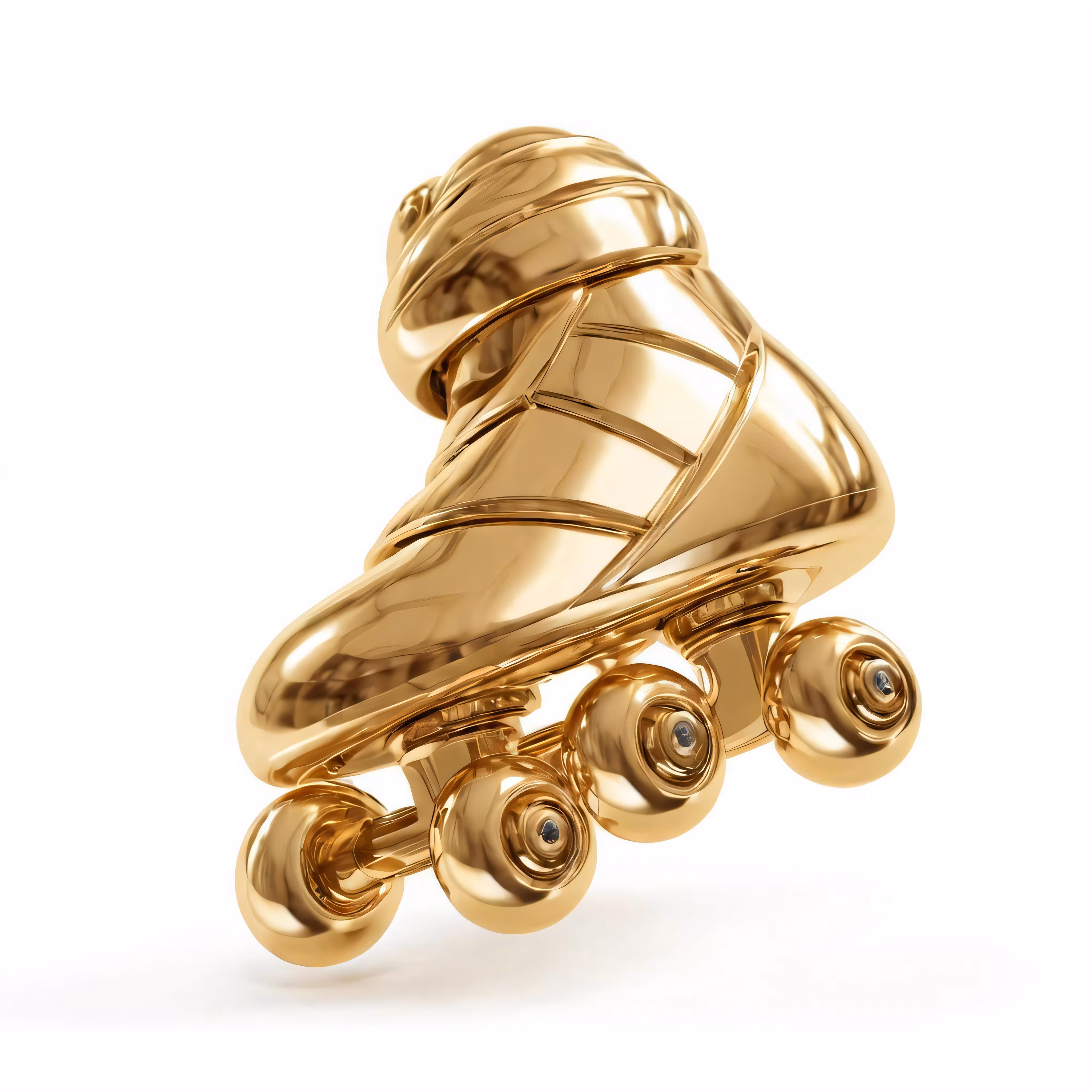 High resolution picture, free to use, a golden skateboard ring with wheels is displayed