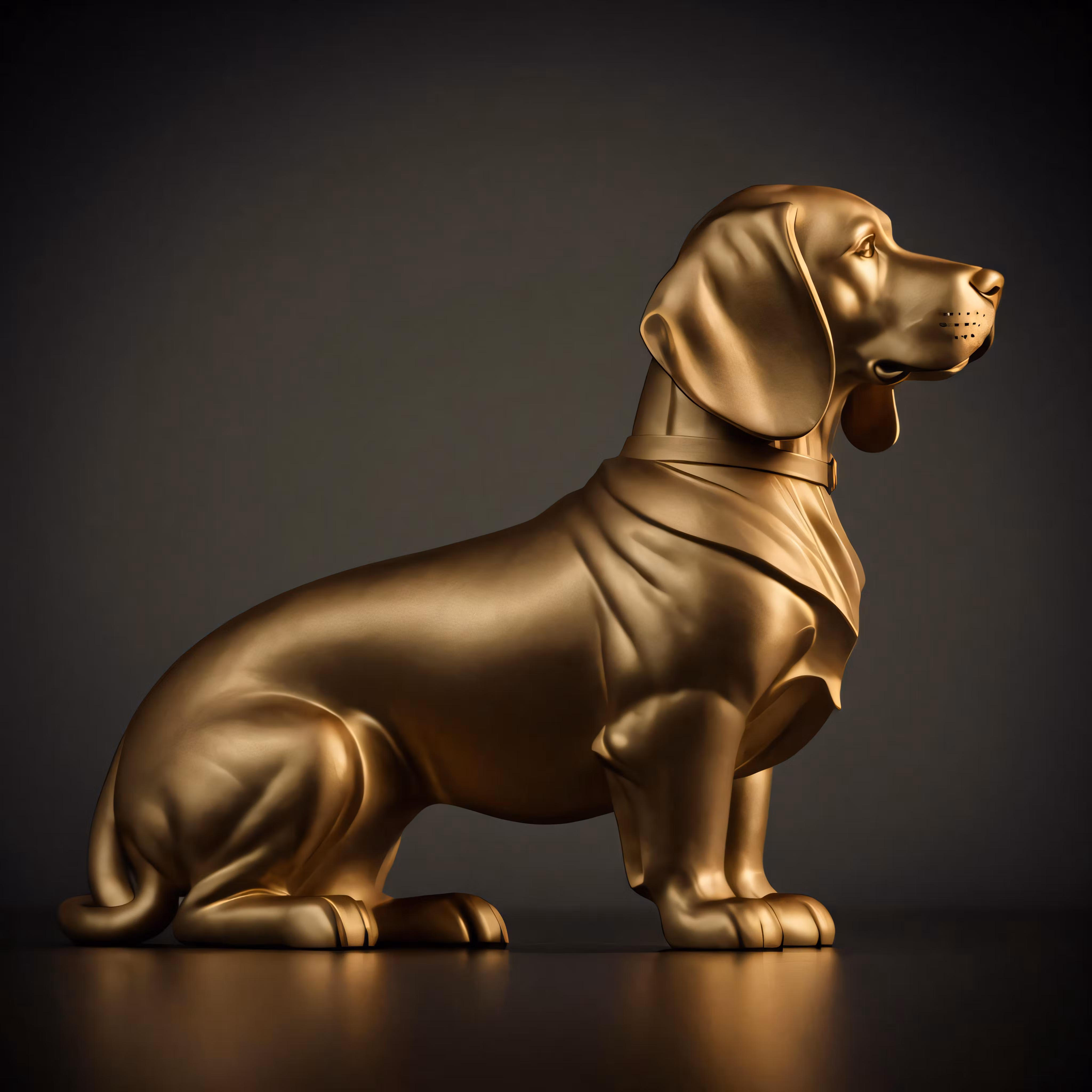 High resolution picture, free to use, a golden statue of a dog is shown in this image