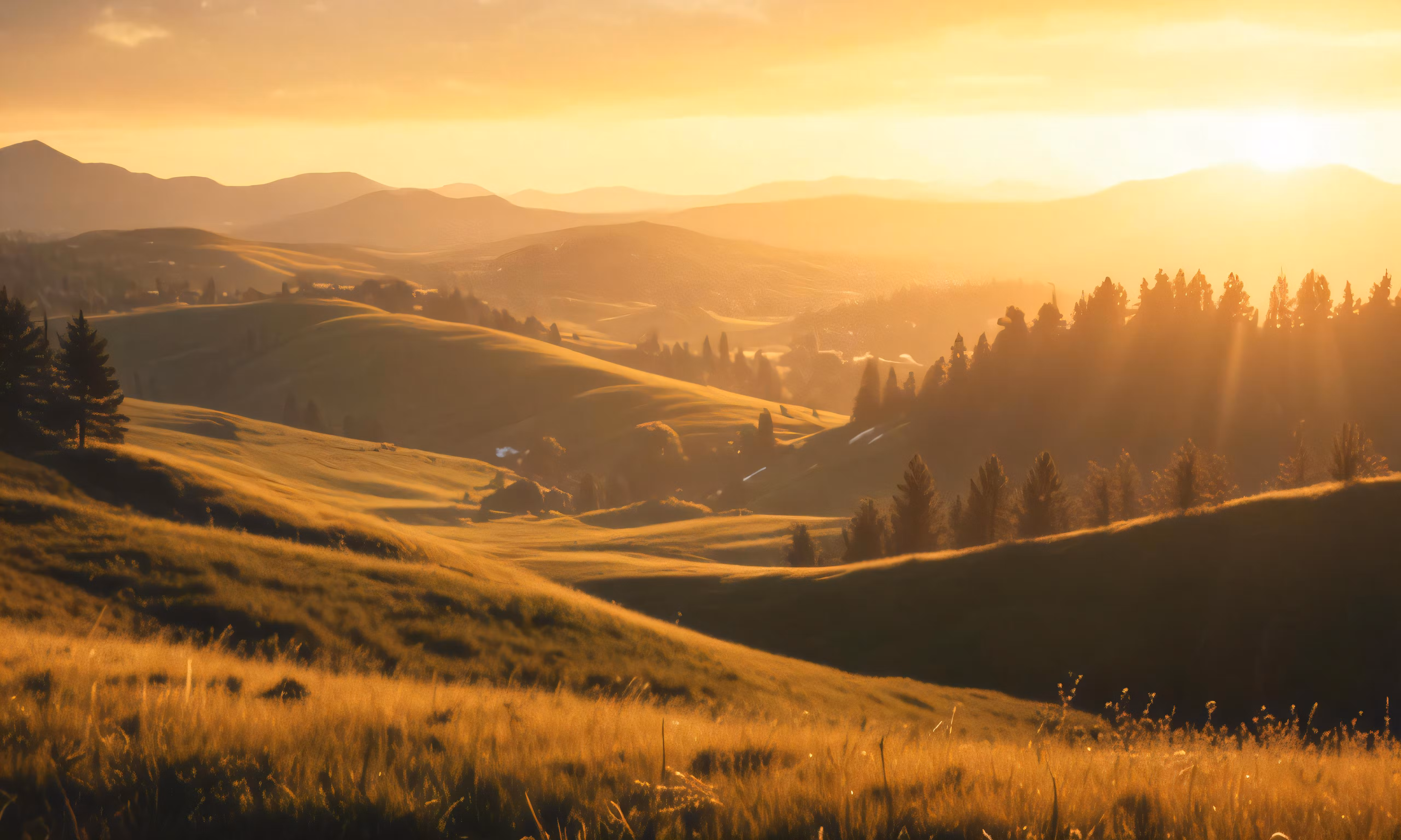High resolution picture, free to use, a grassy hillside with a group of trees on top