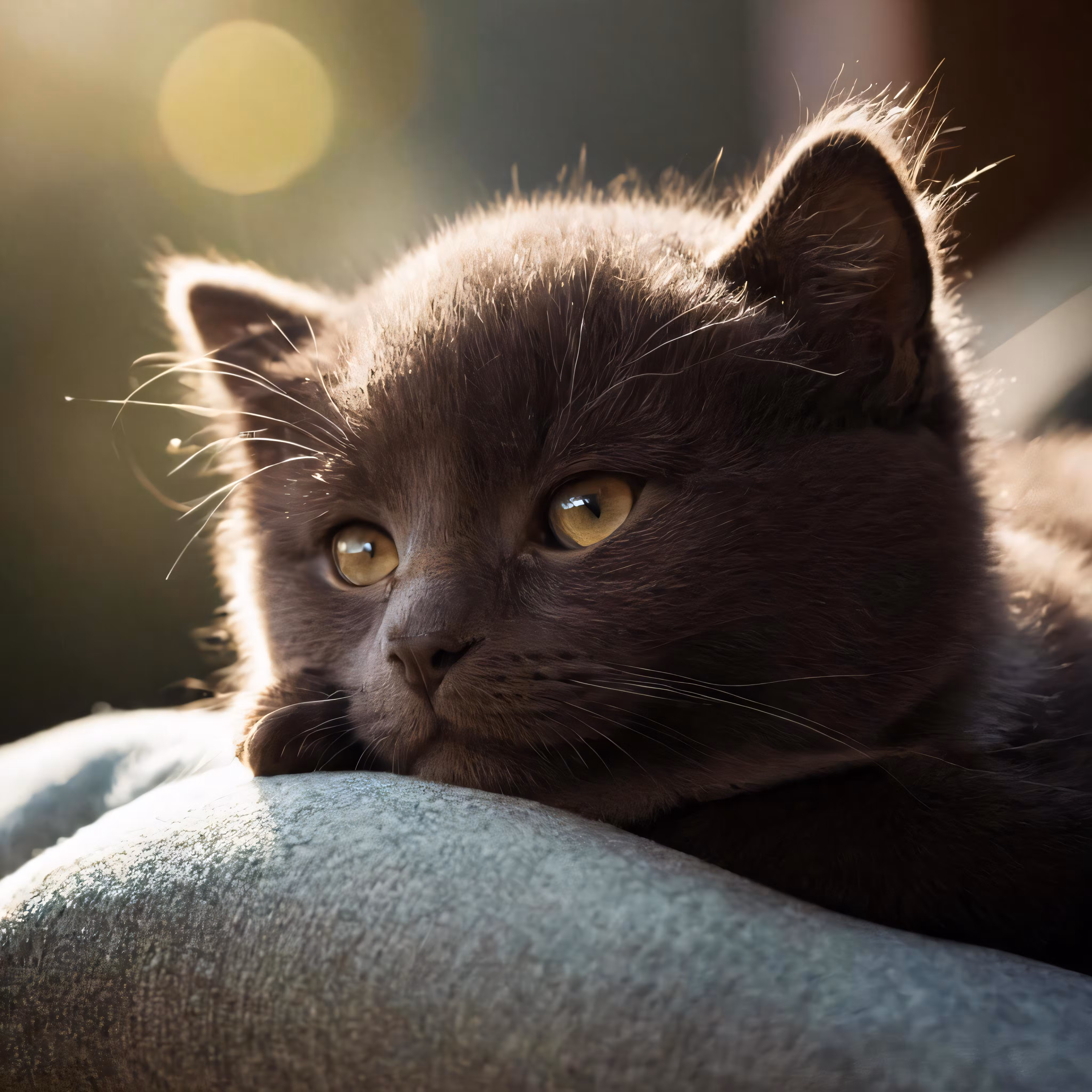 High resolution picture, free to use, a gray cat laying down on top of a blanket