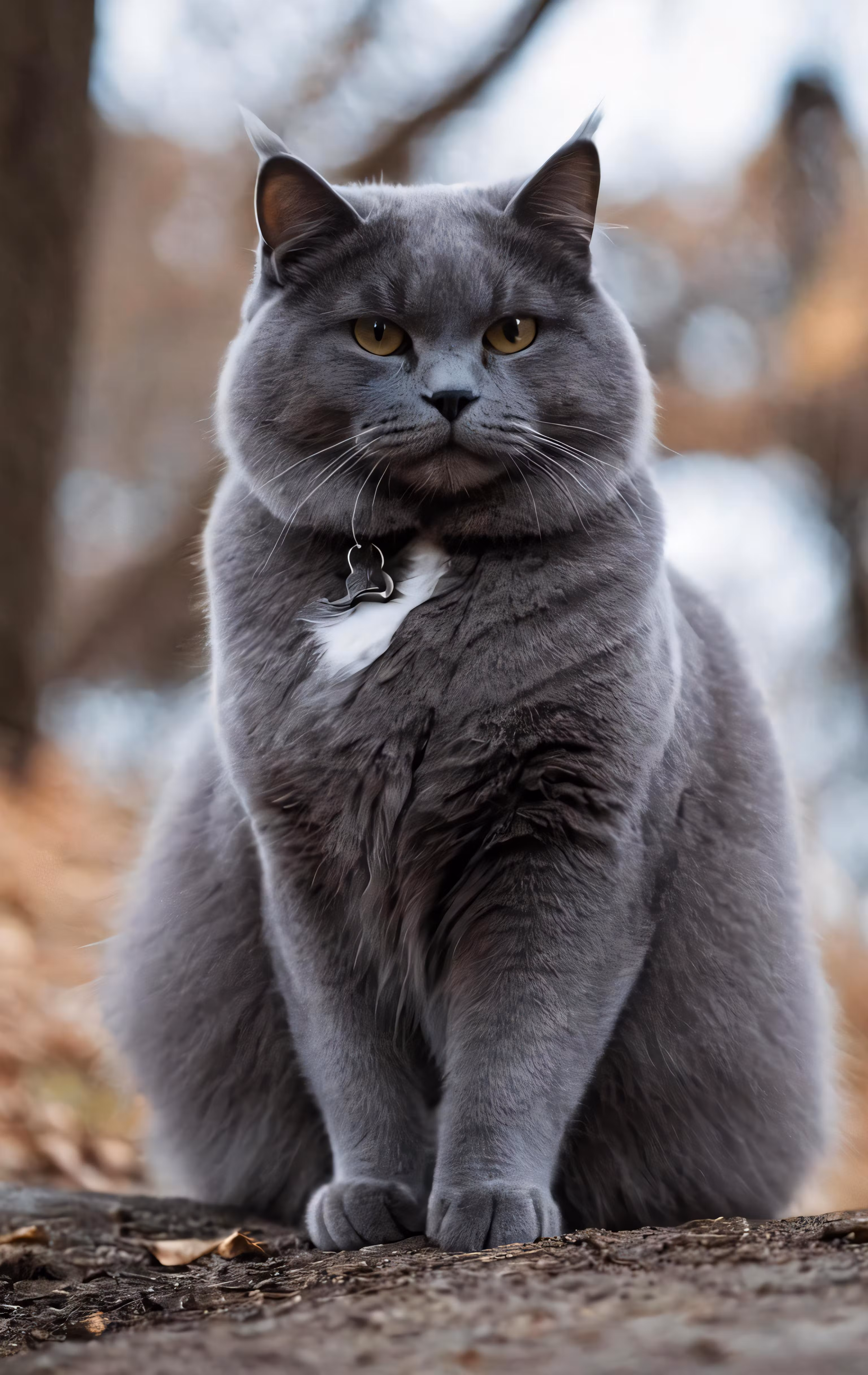 High resolution picture, free to use, a gray cat sitting and looking at the camera