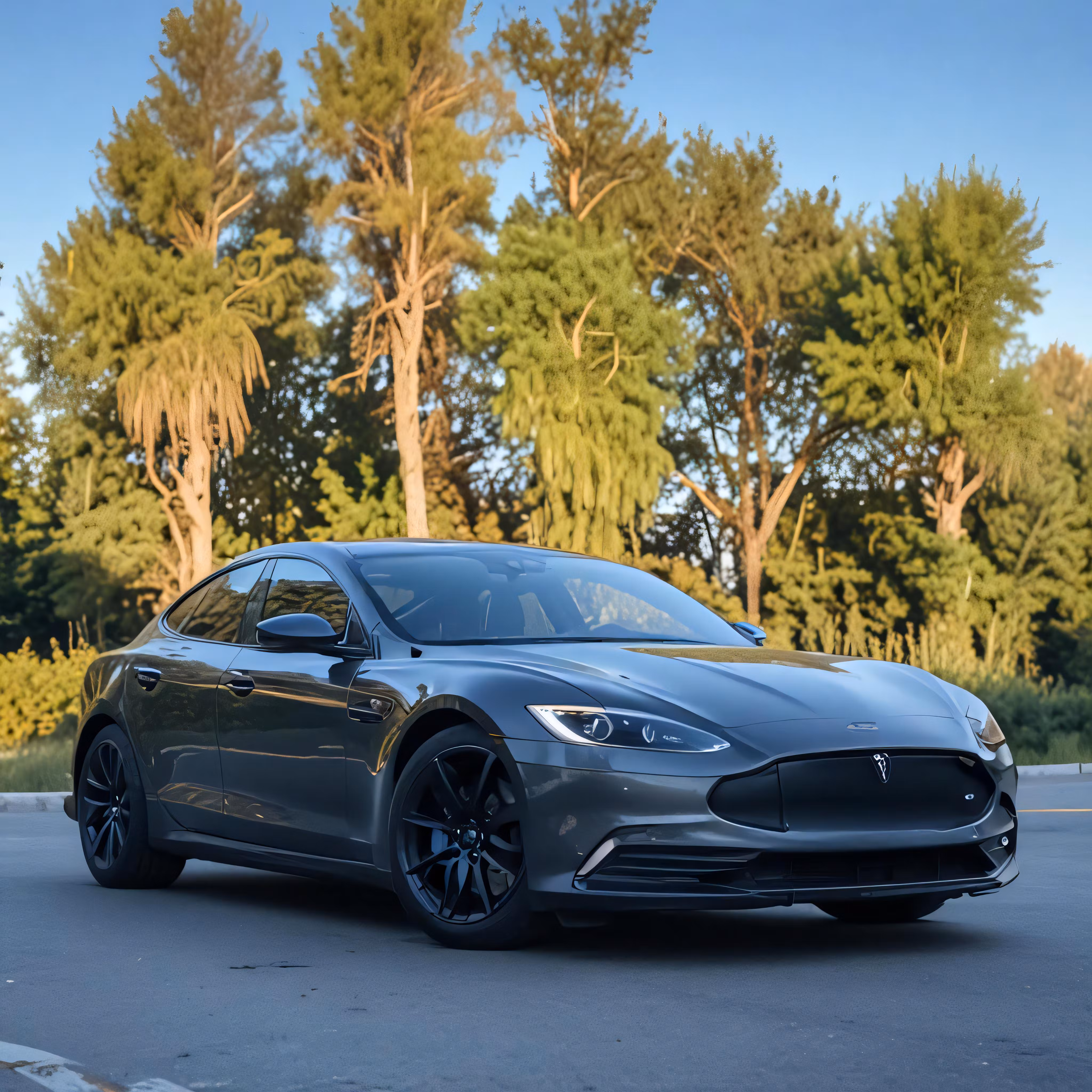 High resolution picture, free to use, a gray sedan is parked on the side of a road