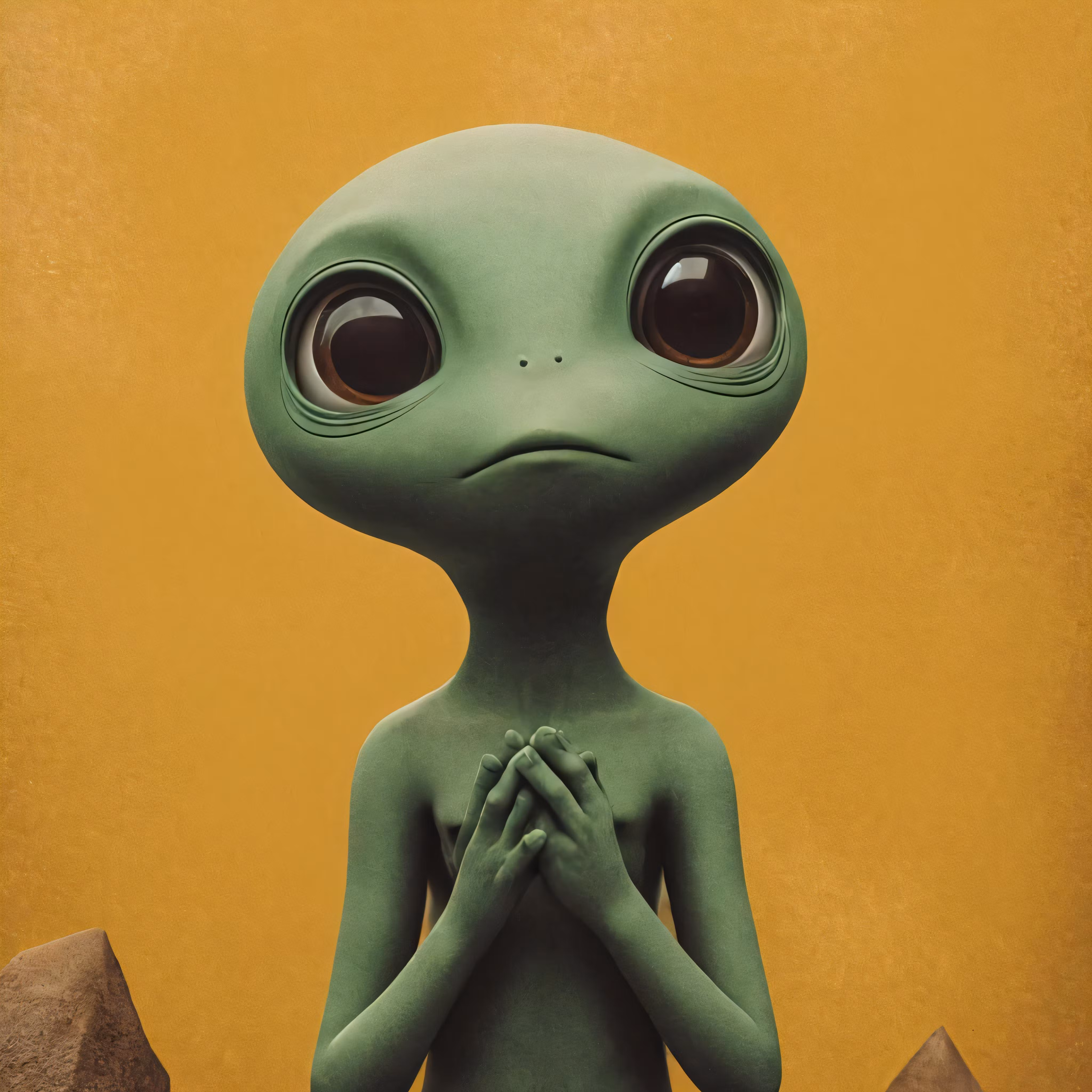 High resolution picture, free to use, a green aliens hand and feet that are standing in front of a wall