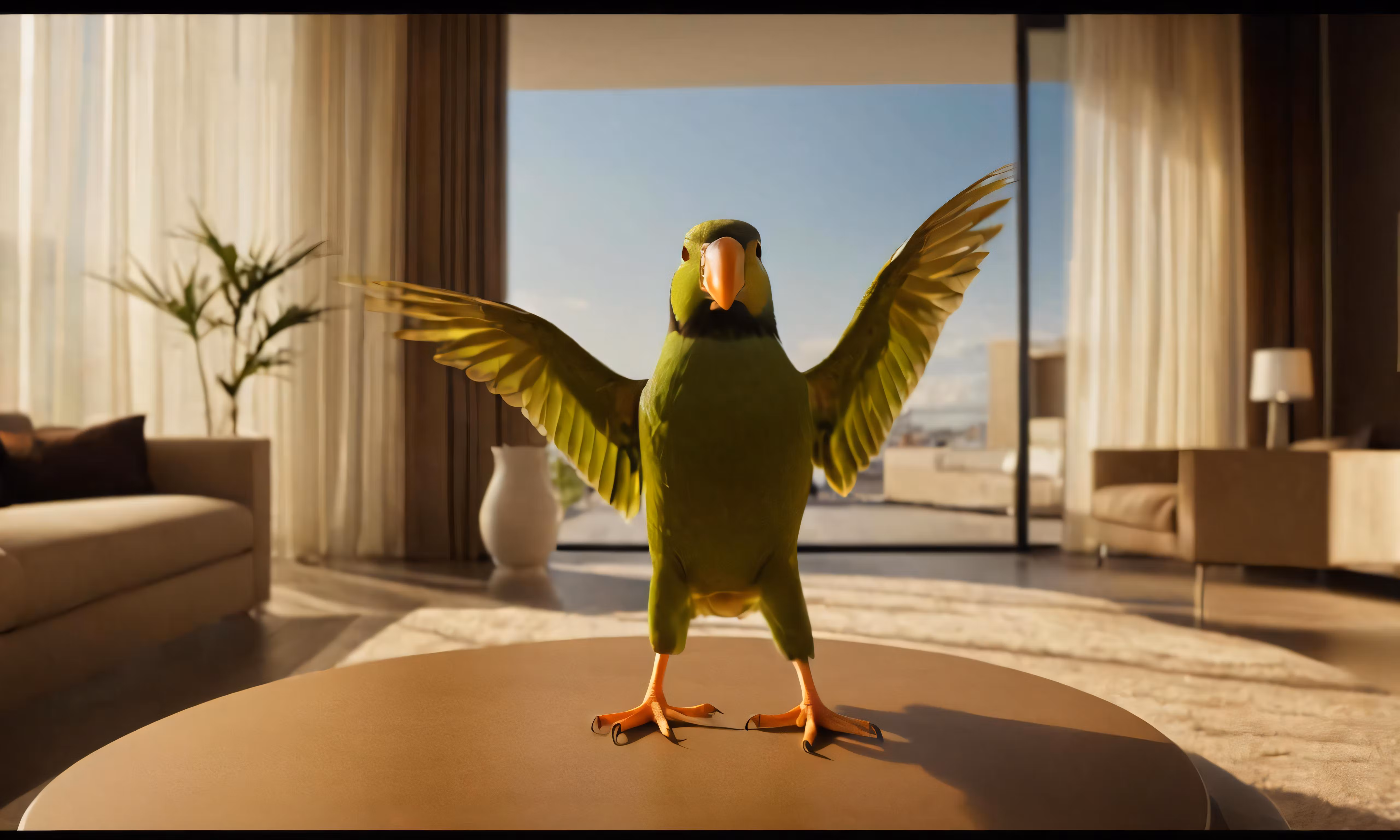 High resolution picture, free to use, a green bird standing on top of a wooden table