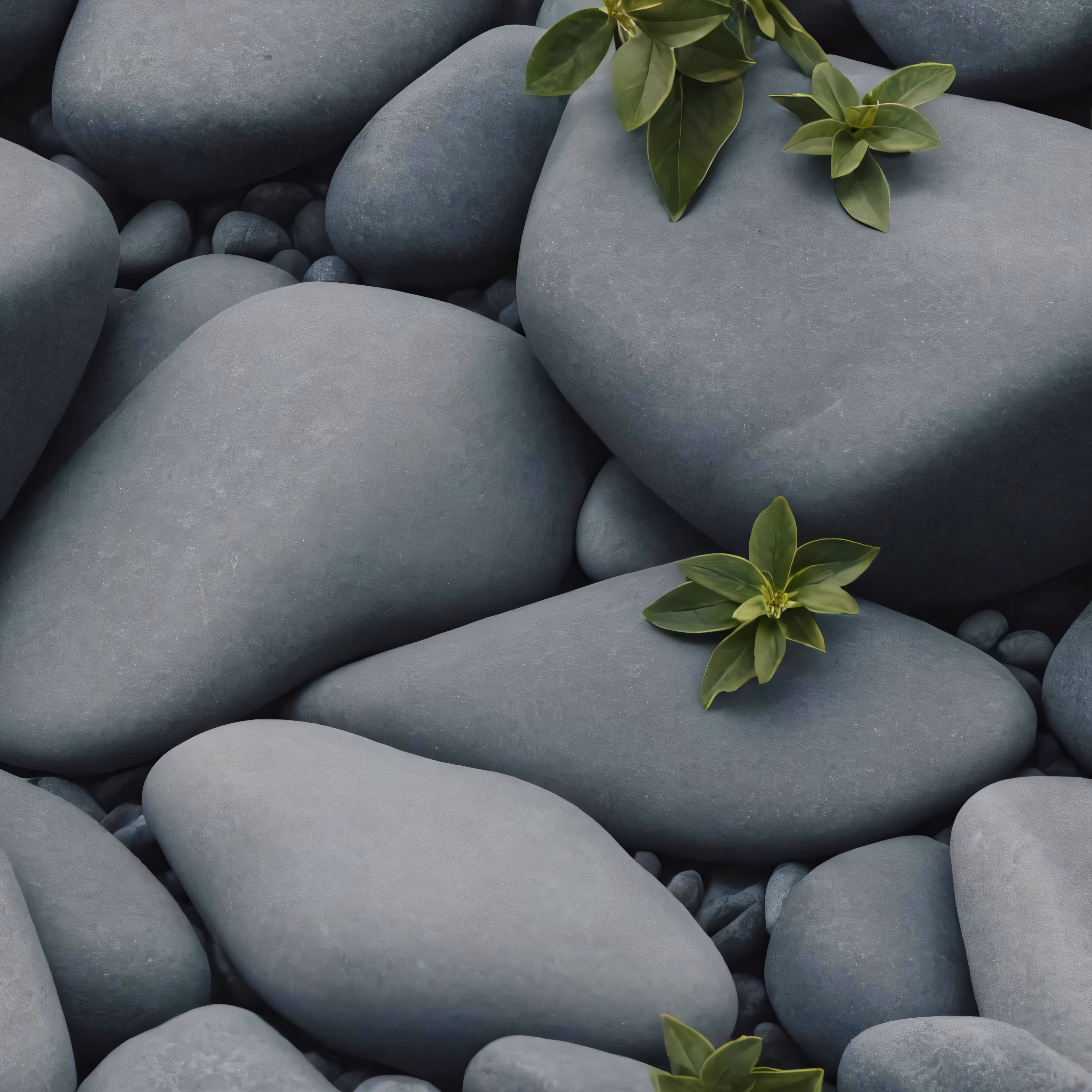 High resolution picture, free to use, a green leaf rests on some stones with other green plants in the rocks