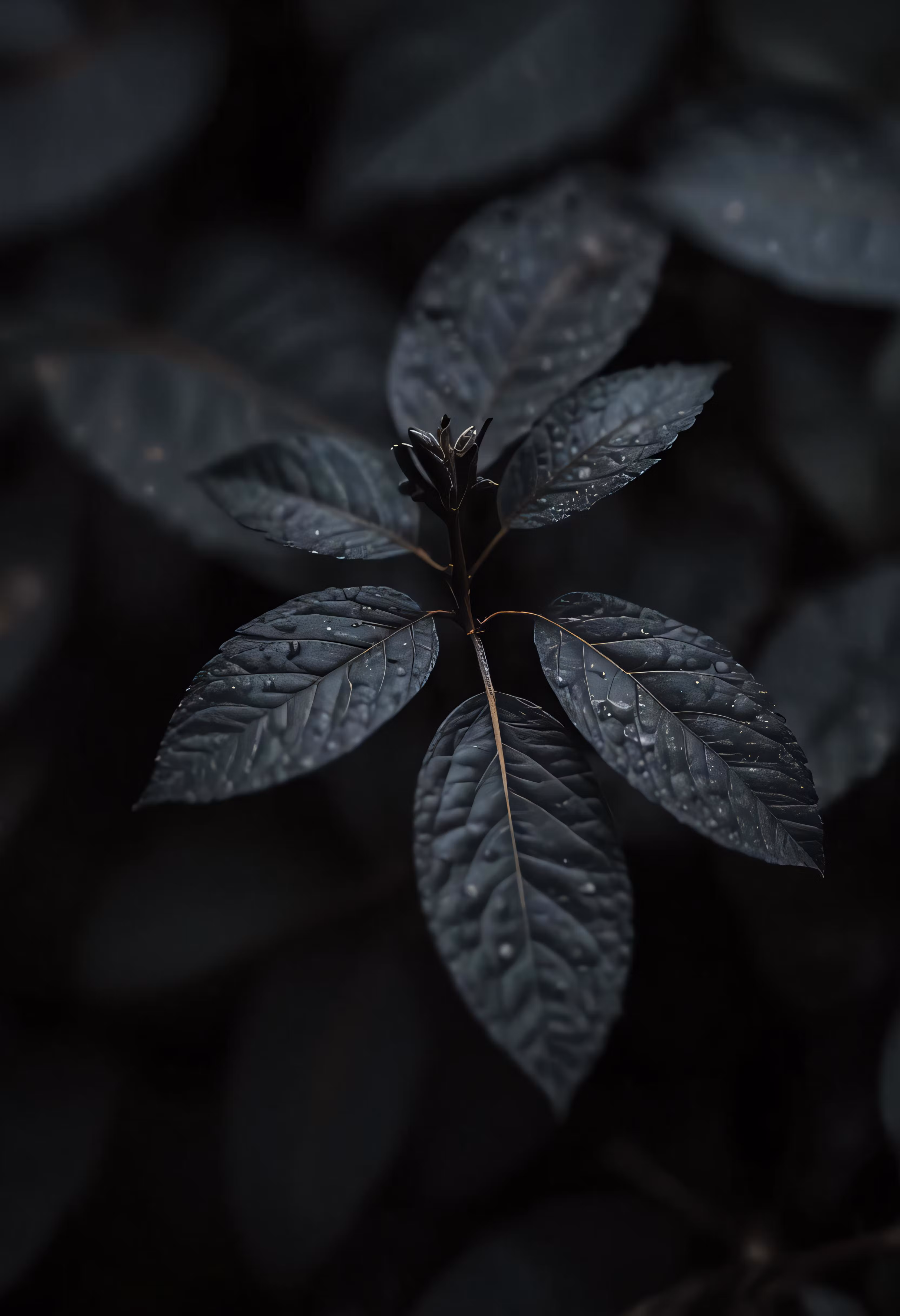 High resolution picture, free to use, a green leafy plant sitting in the middle of dark foliage