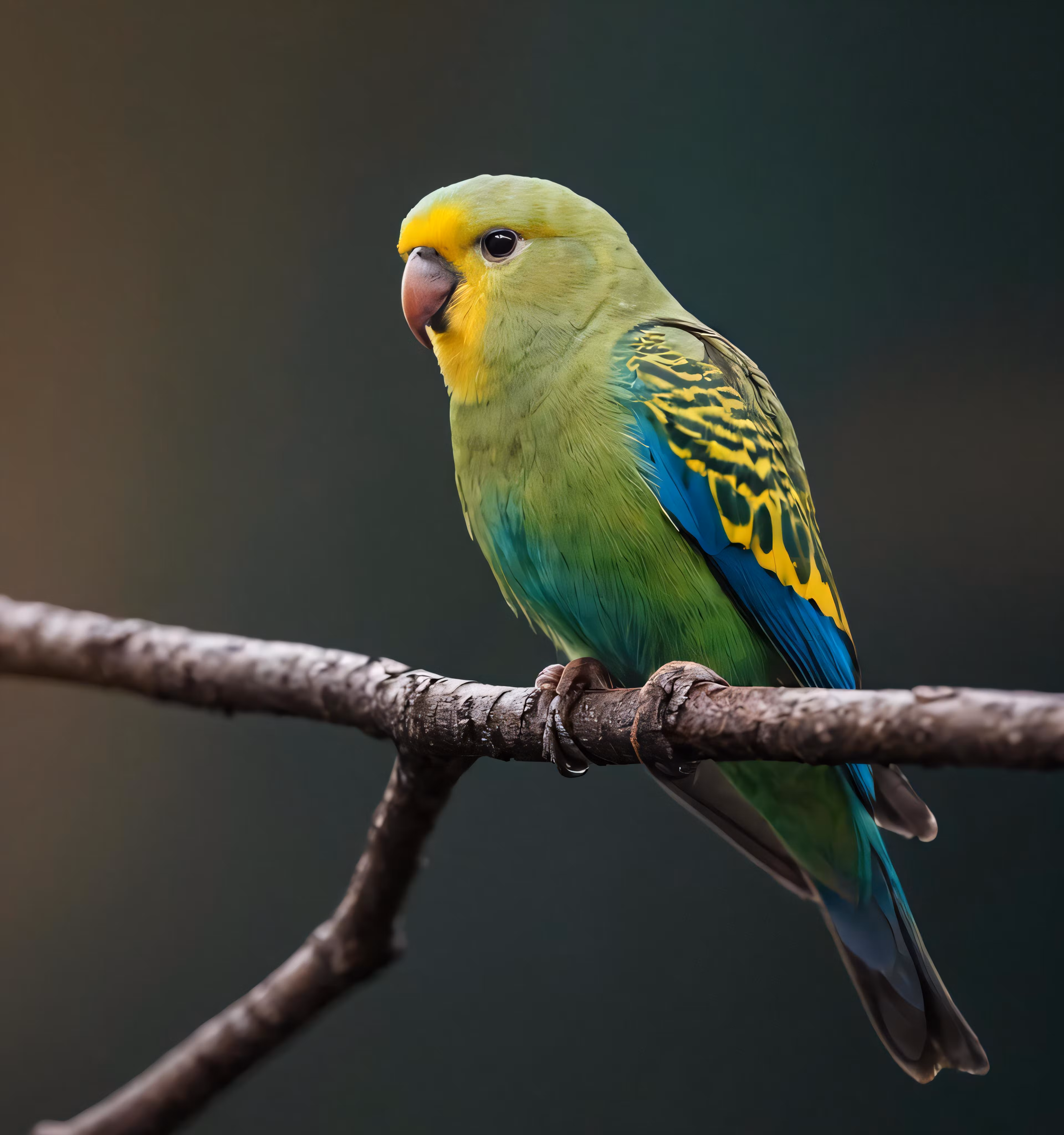High resolution picture, free to use, a green yellow and blue bird sitting on a branch