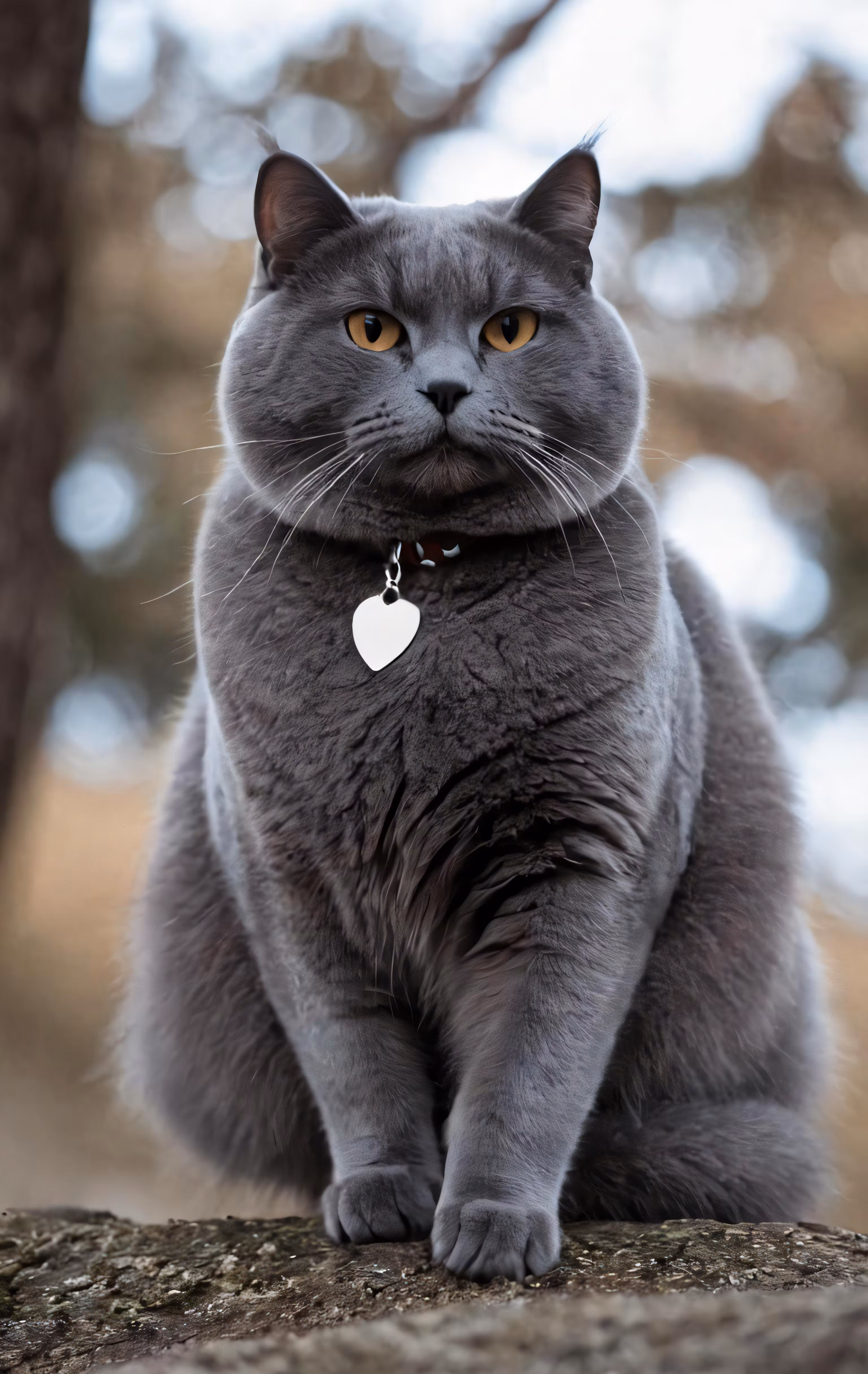 High resolution picture, free to use, a grey cat sitting on a rock looking at the camera