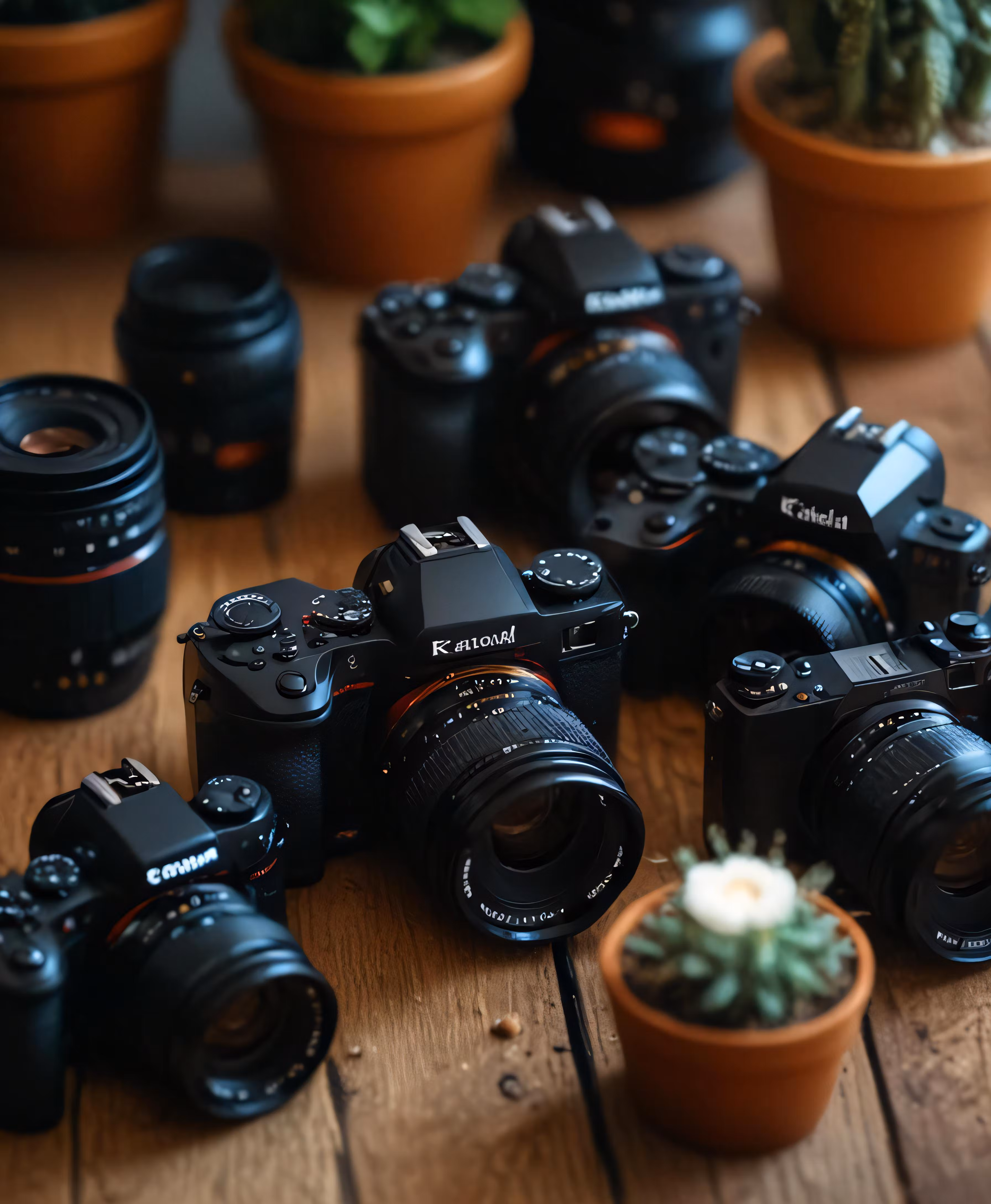 High resolution picture, free to use, a group of cameras sitting next to each other
