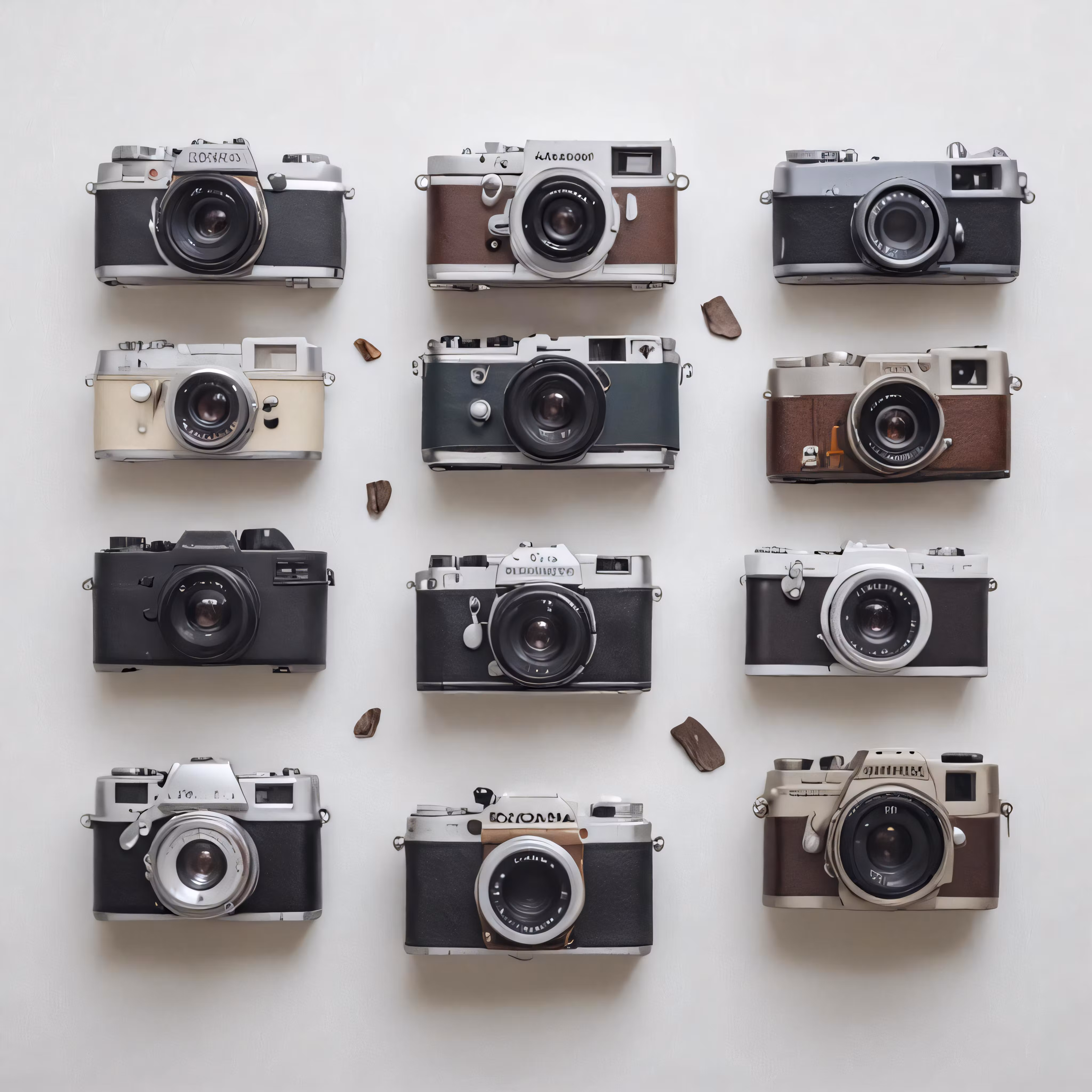 High resolution picture, free to use, a group of four old cameras sitting side by side