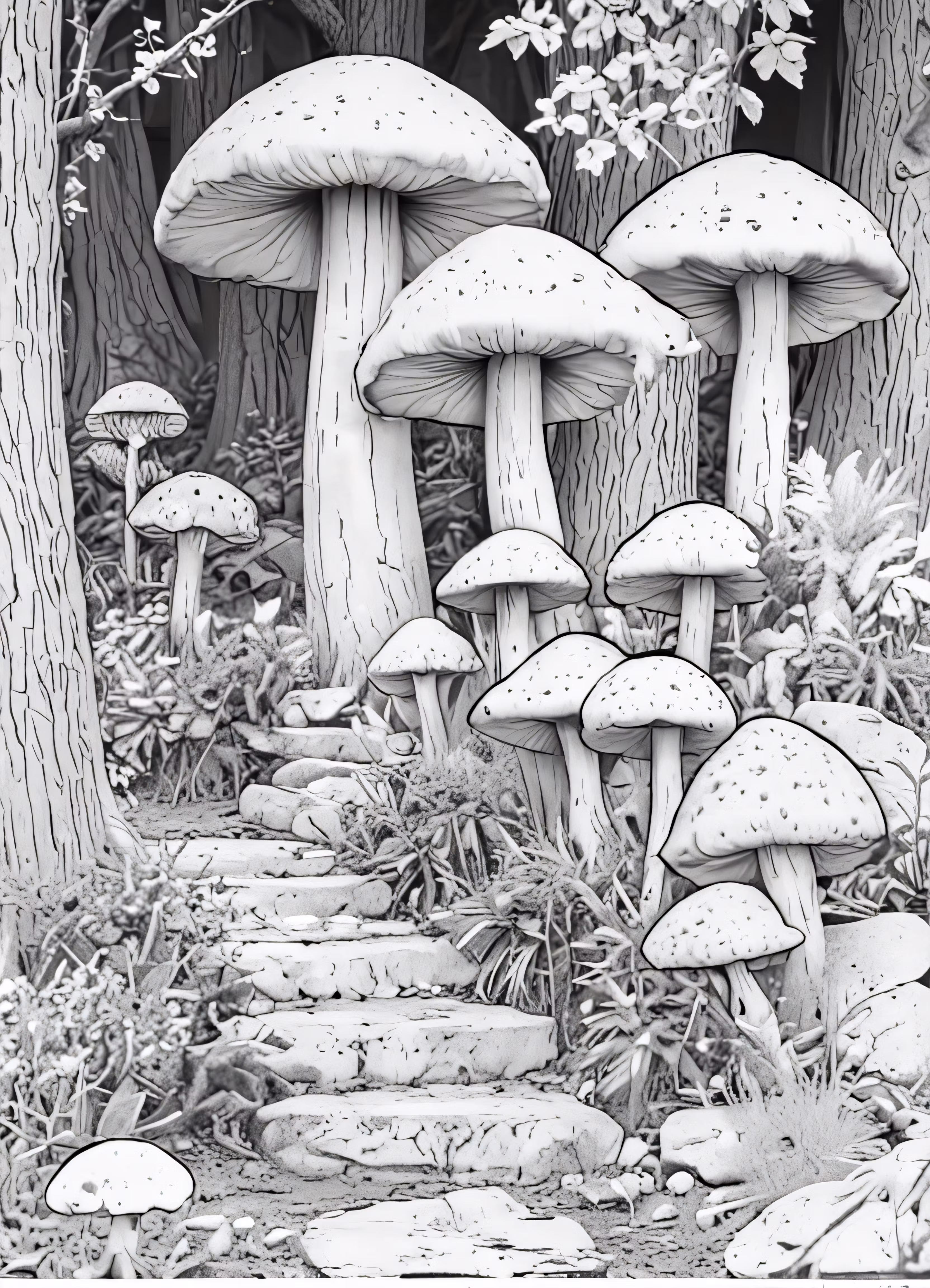 High resolution picture, free to use, a group of mushrooms in the woods by a tree