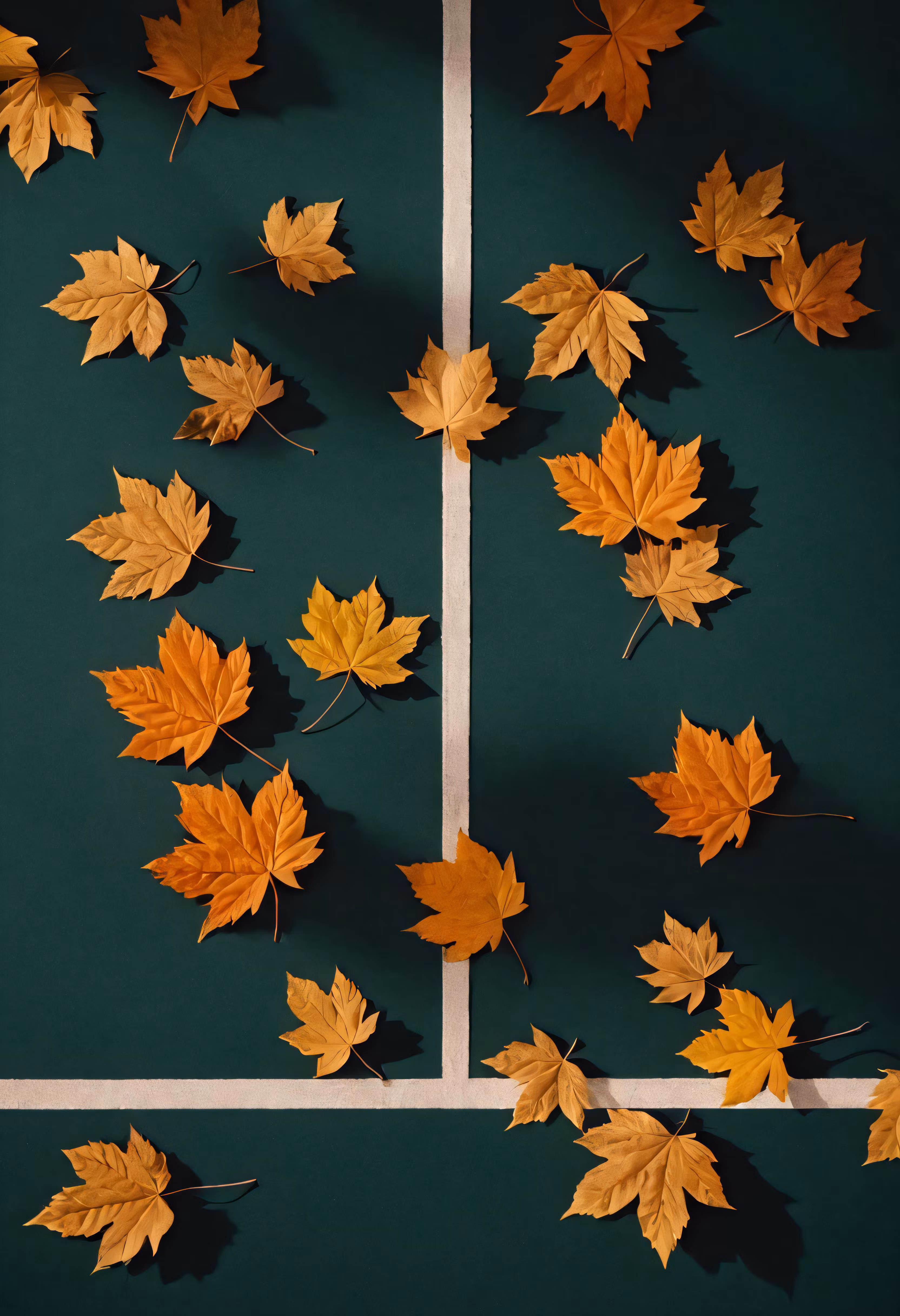 High resolution picture, free to use, a group of orange leaves are on a tennis court