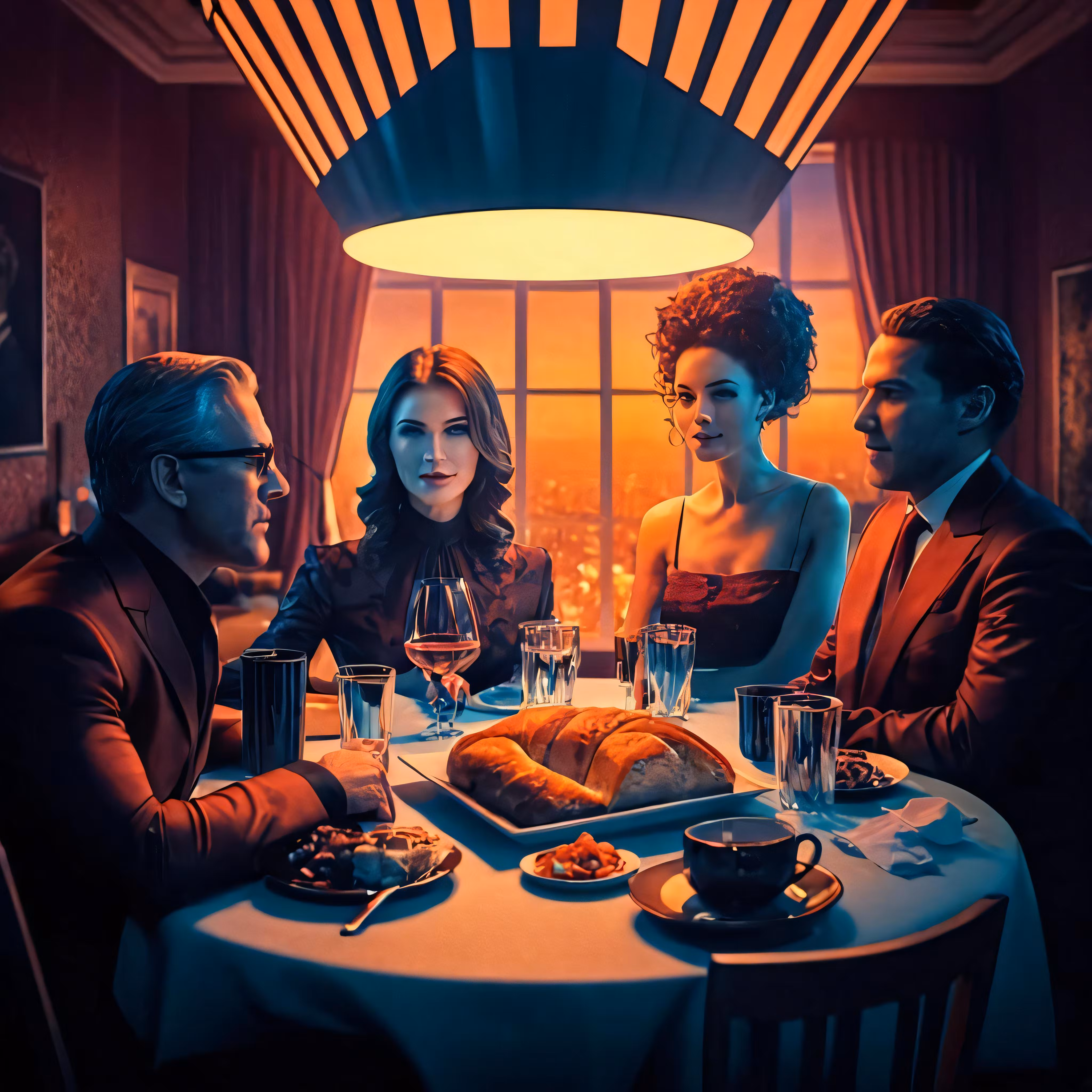 High resolution picture, free to use, a group of people are sitting at a dinner table