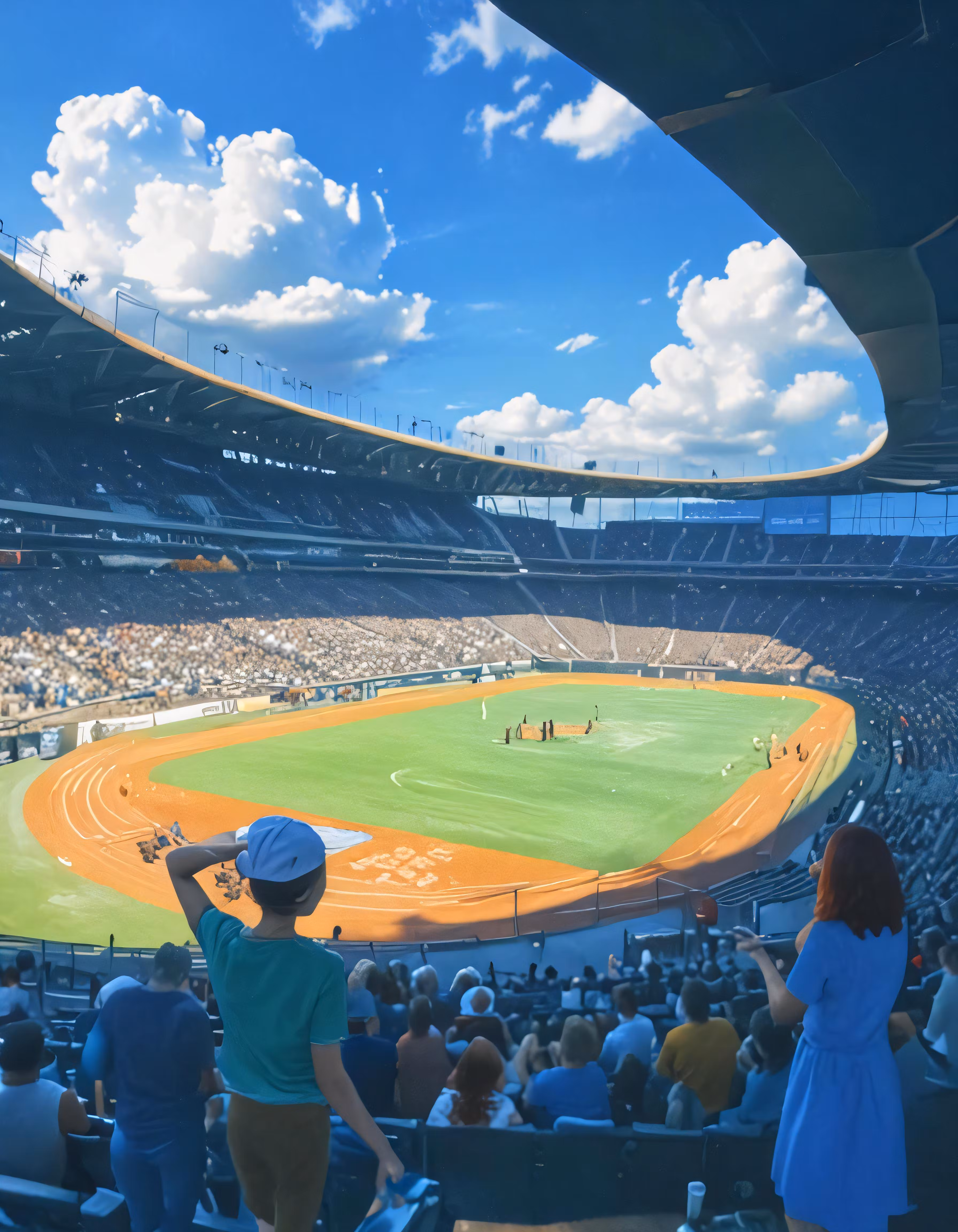 High resolution picture, free to use, a group of people playing baseball at an empty stadium