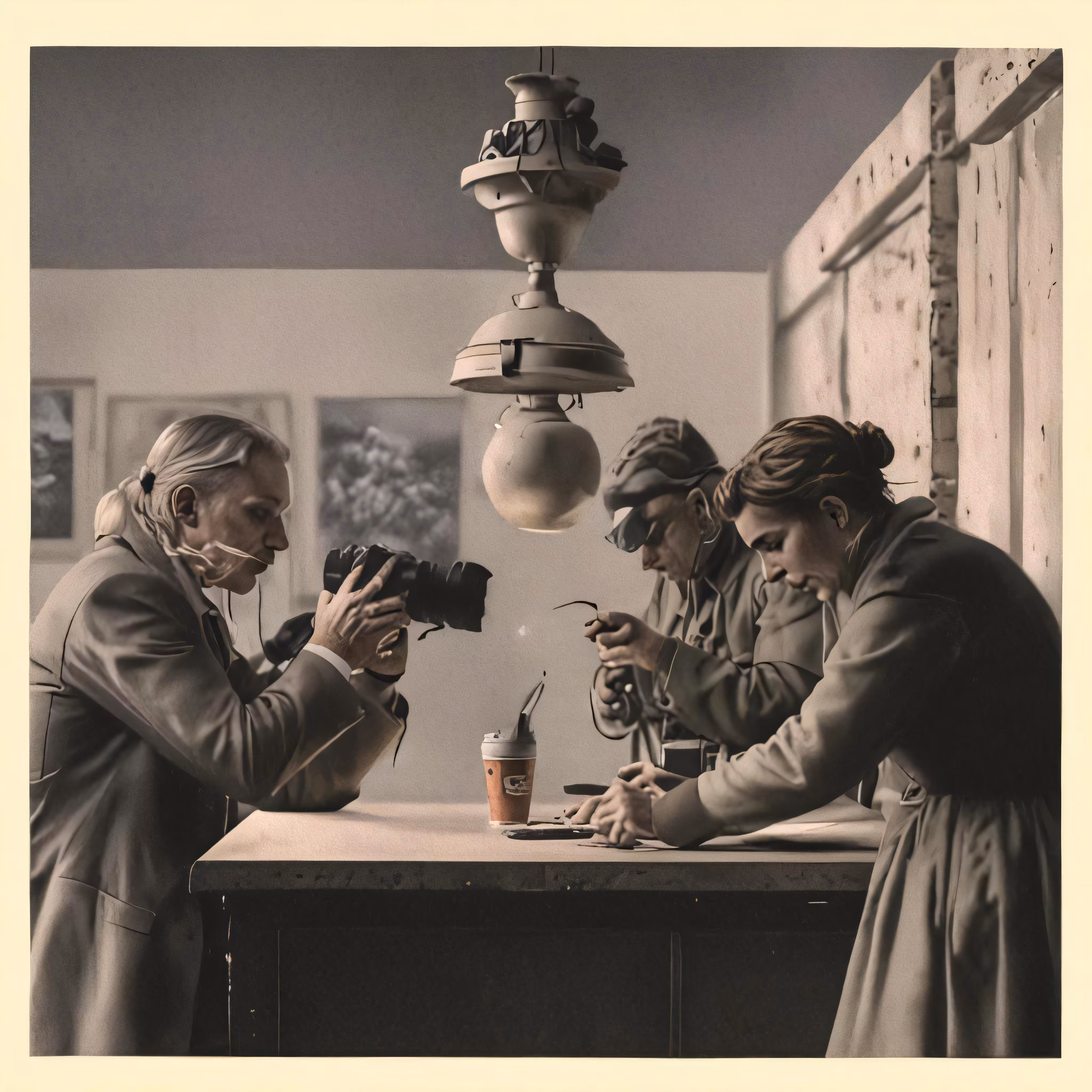 High resolution picture, free to use, a group of people sit at a table in front of a camera