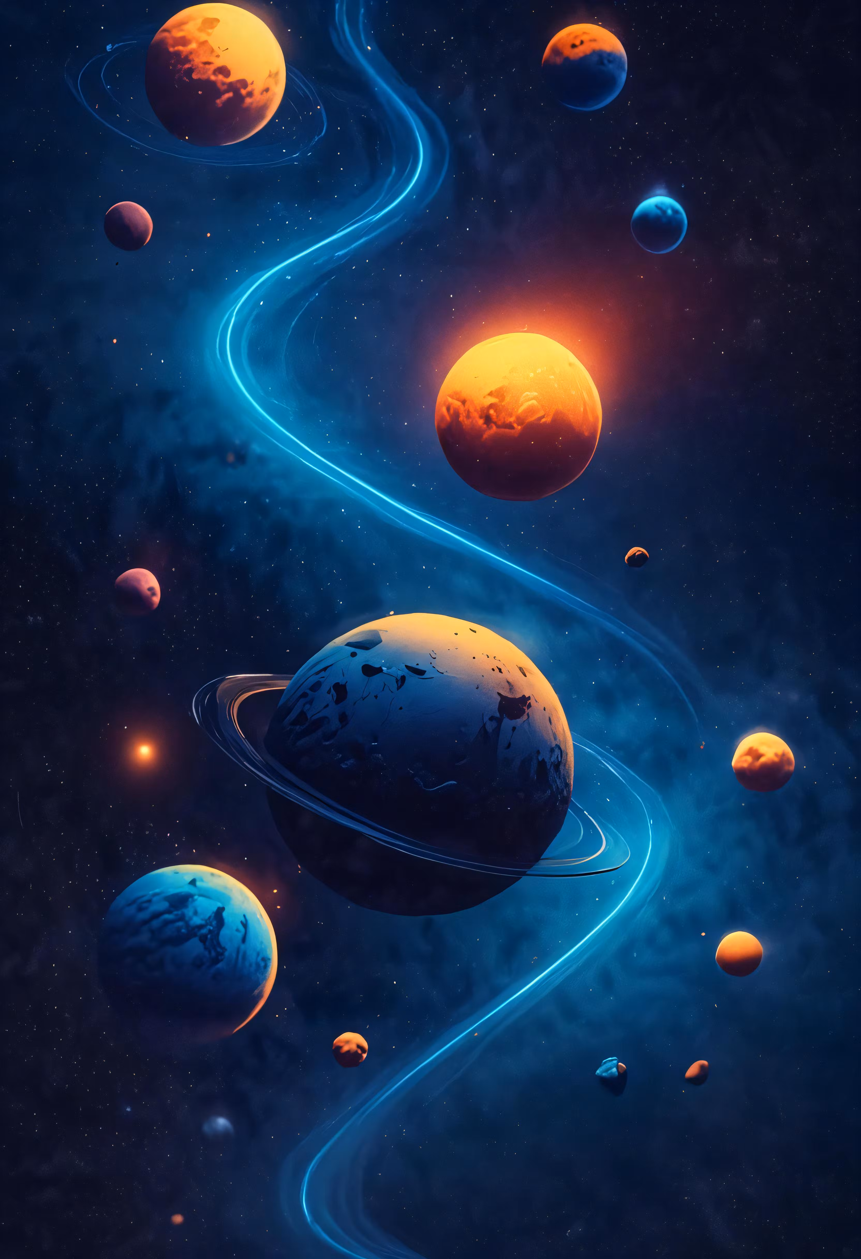 High resolution picture, free to use, a group of planets are flying across the sky