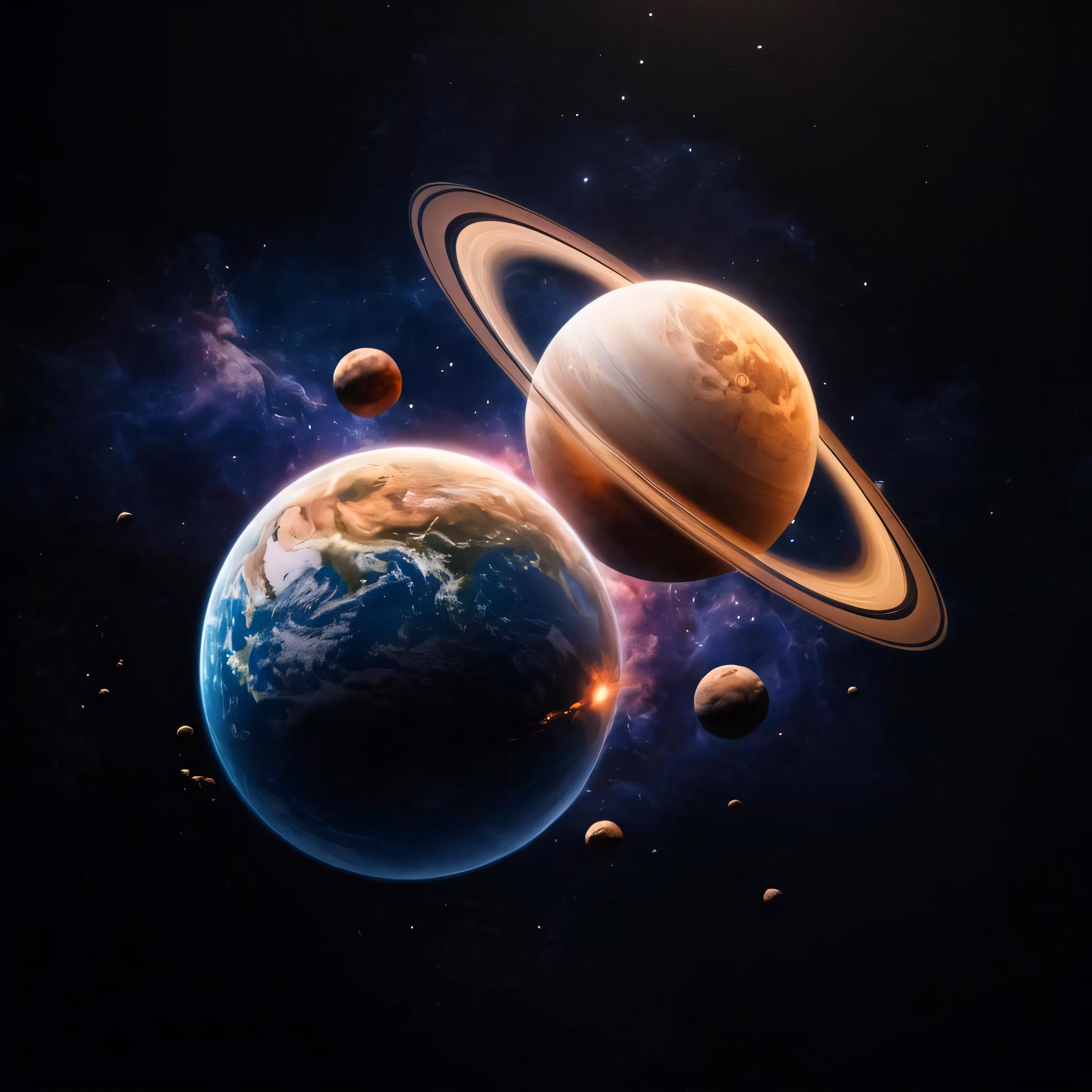 High resolution picture, free to use, a group of planets are in the dark sky