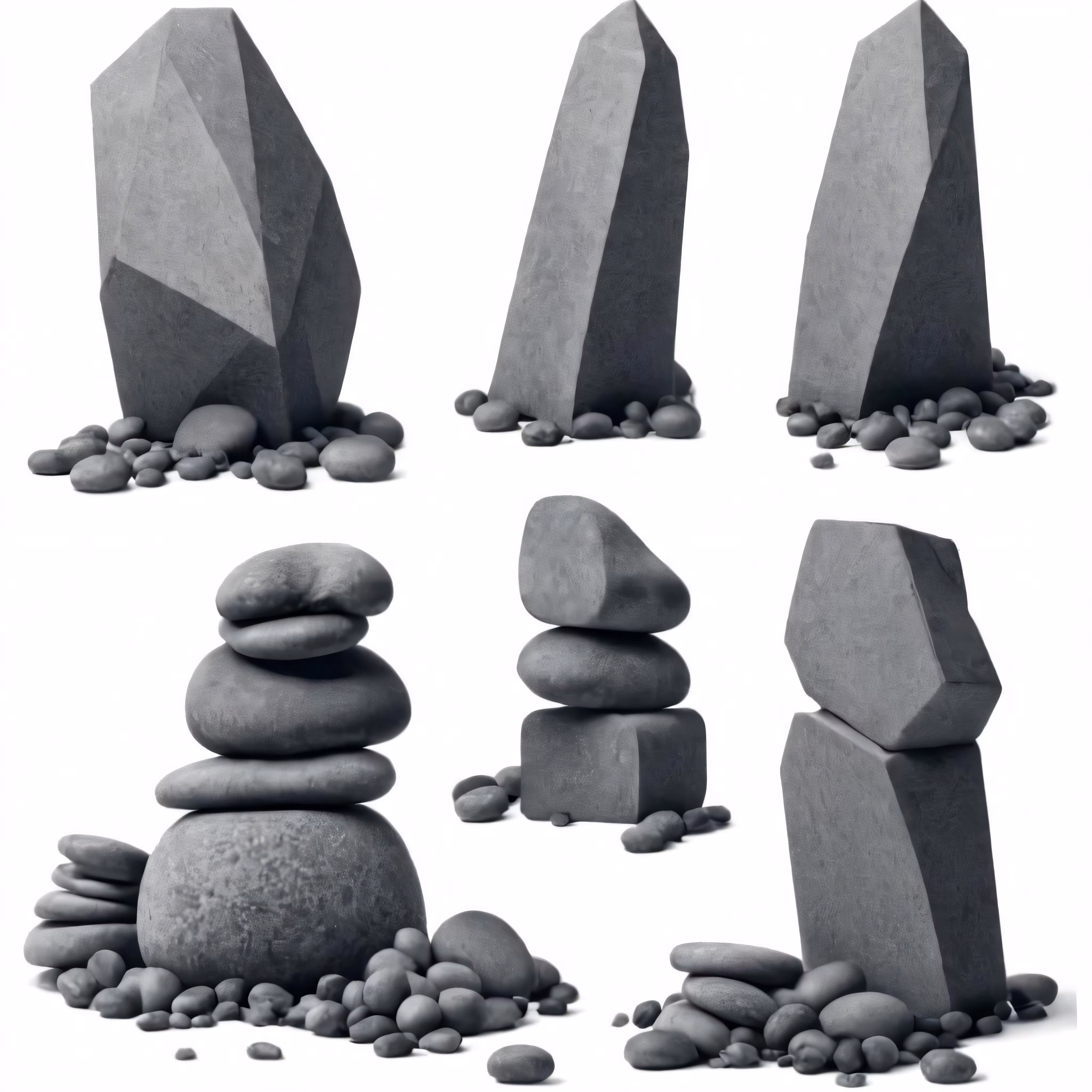 High resolution picture, free to use, a group of rocks sitting in gravel next to each other