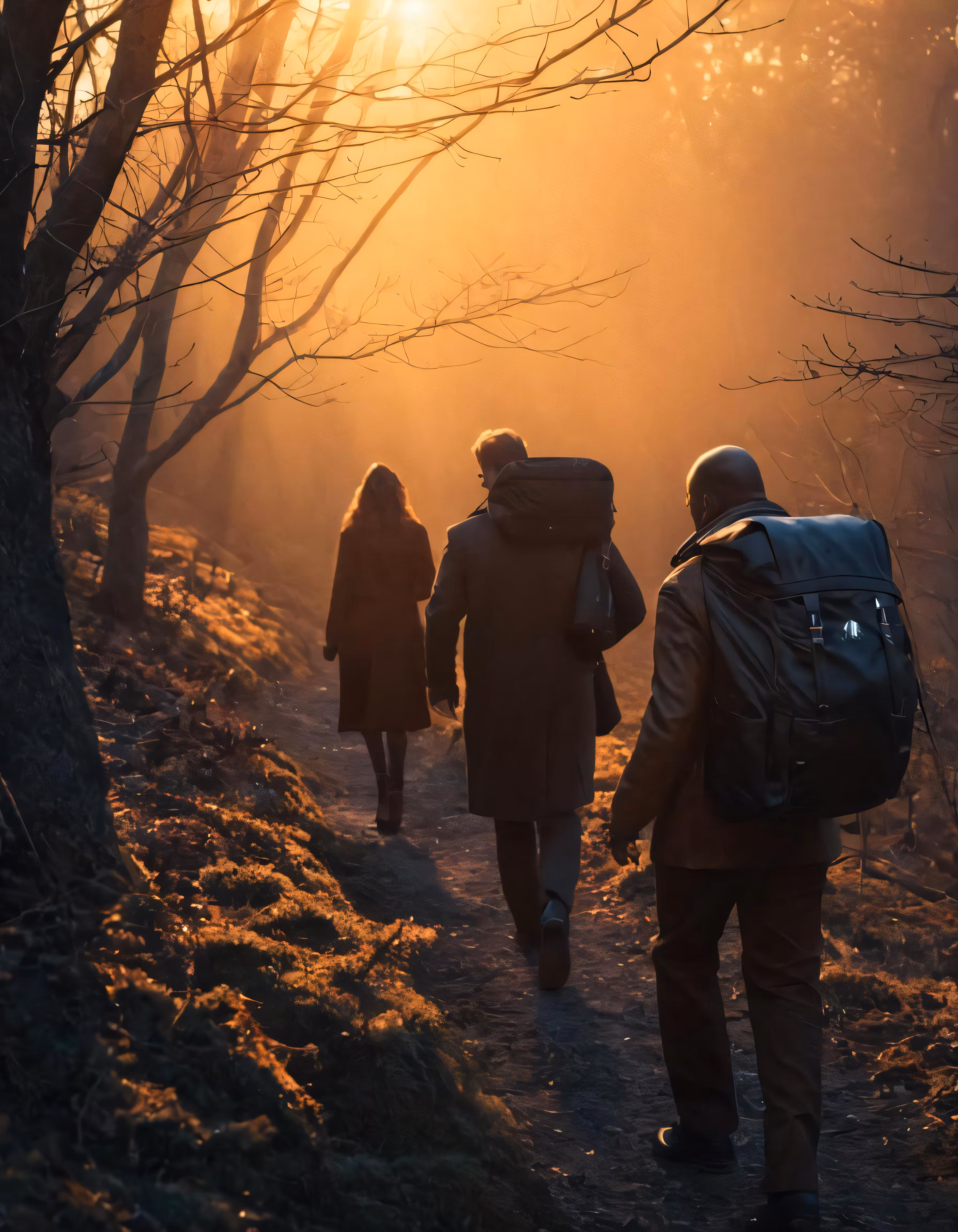 High resolution picture, free to use, a group of three people walking down a trail