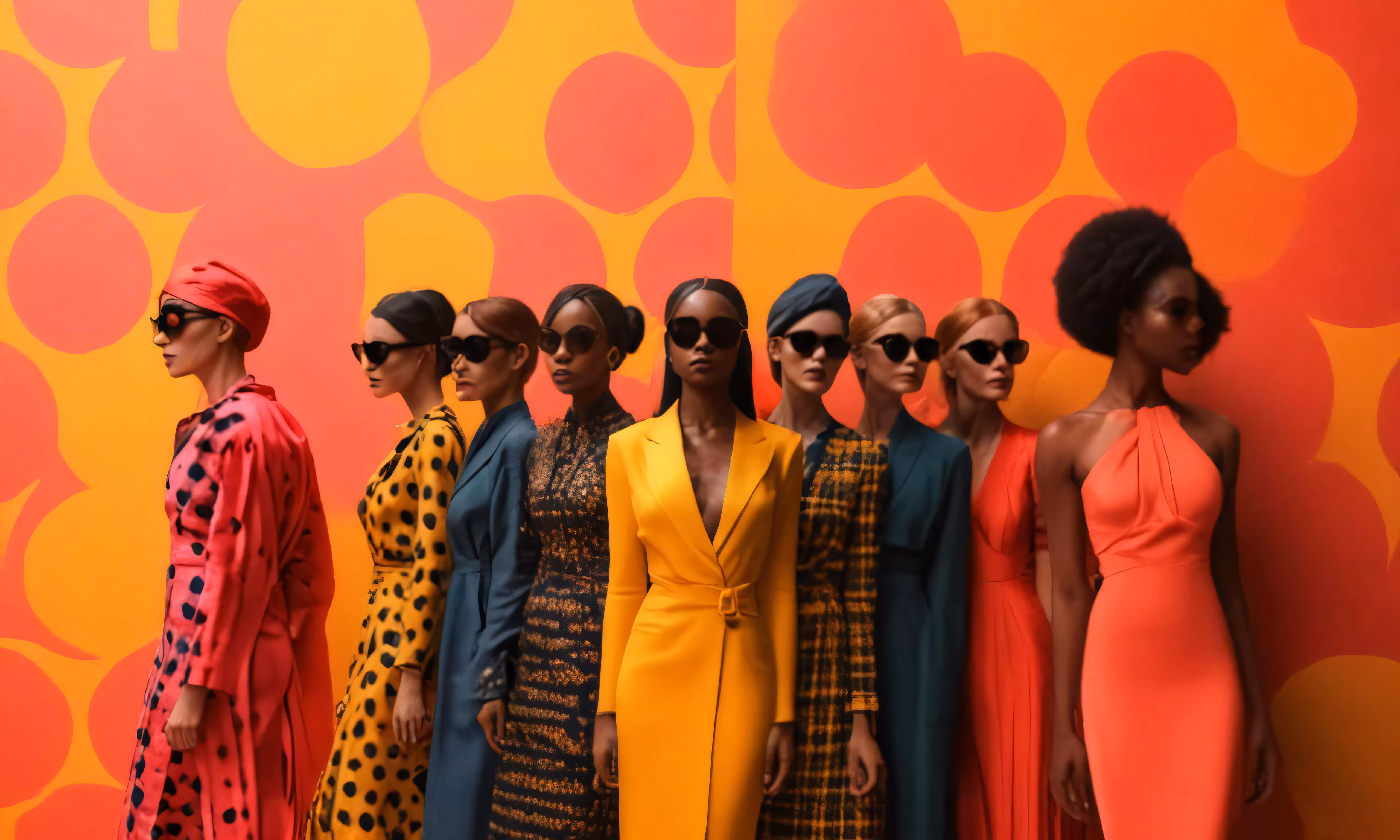 High resolution picture, free to use, a group of women standing in front of an orange wall