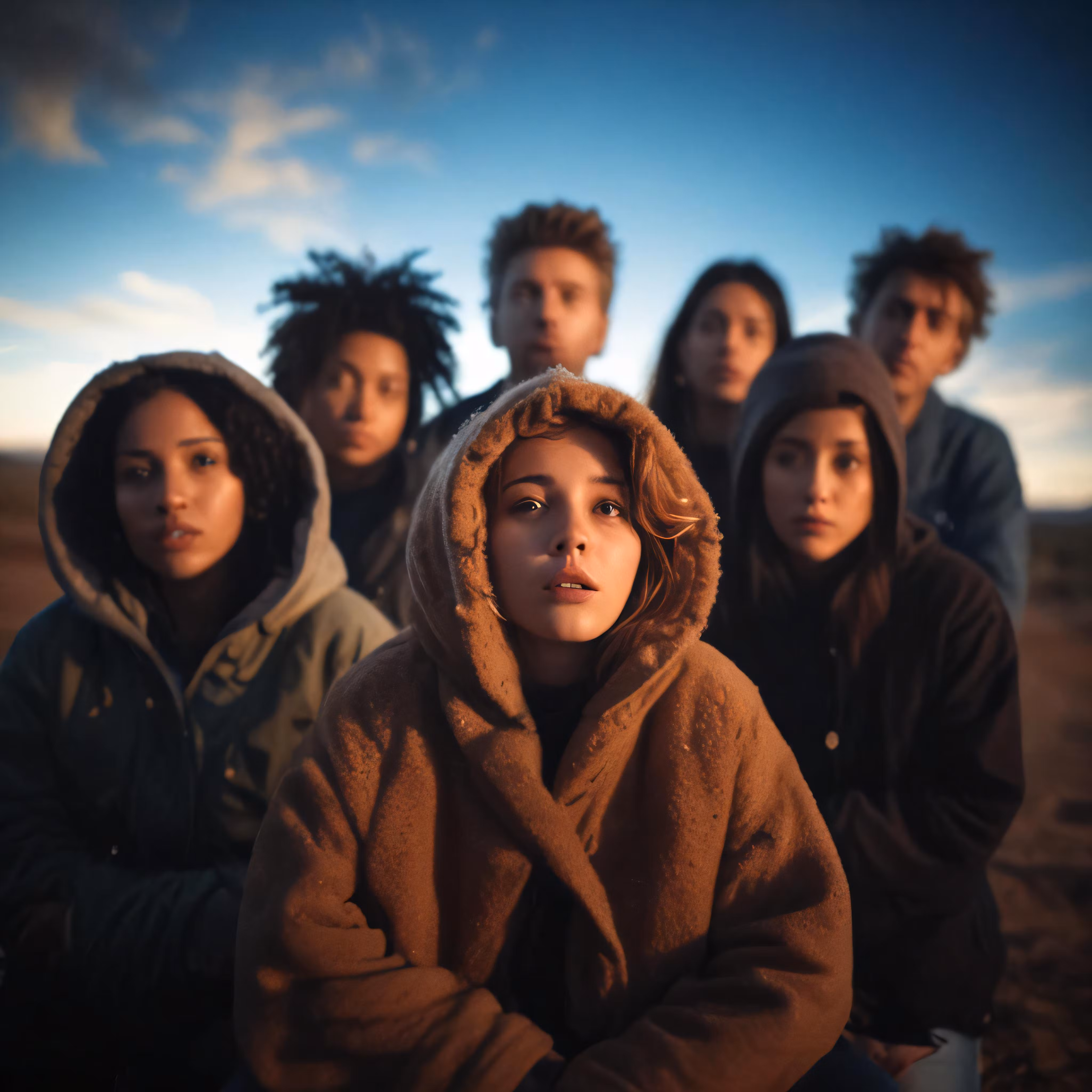 High resolution picture, free to use, a group of young people with furry coats