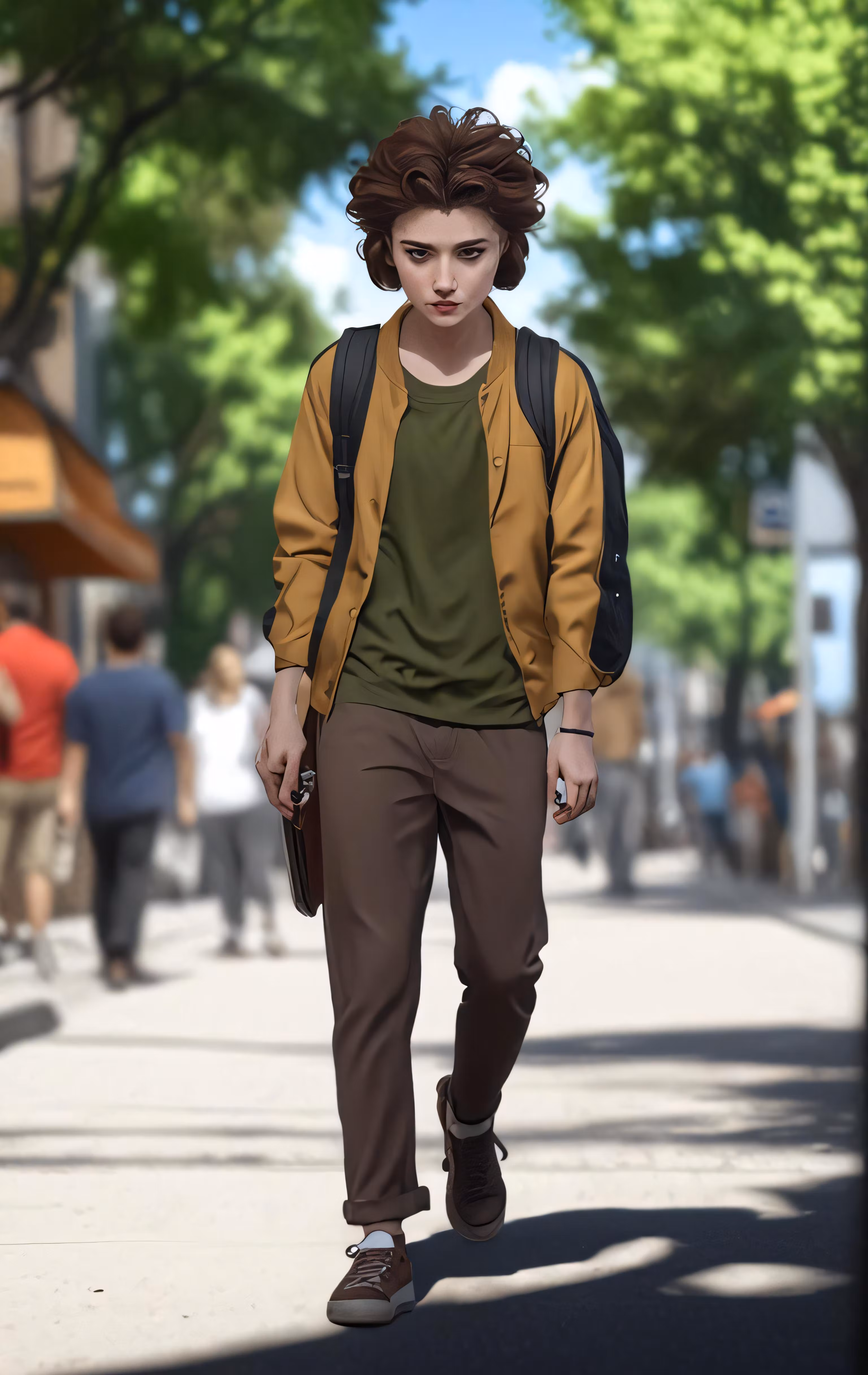 High resolution picture, free to use, a guy walking down the sidewalk in an animated fashion