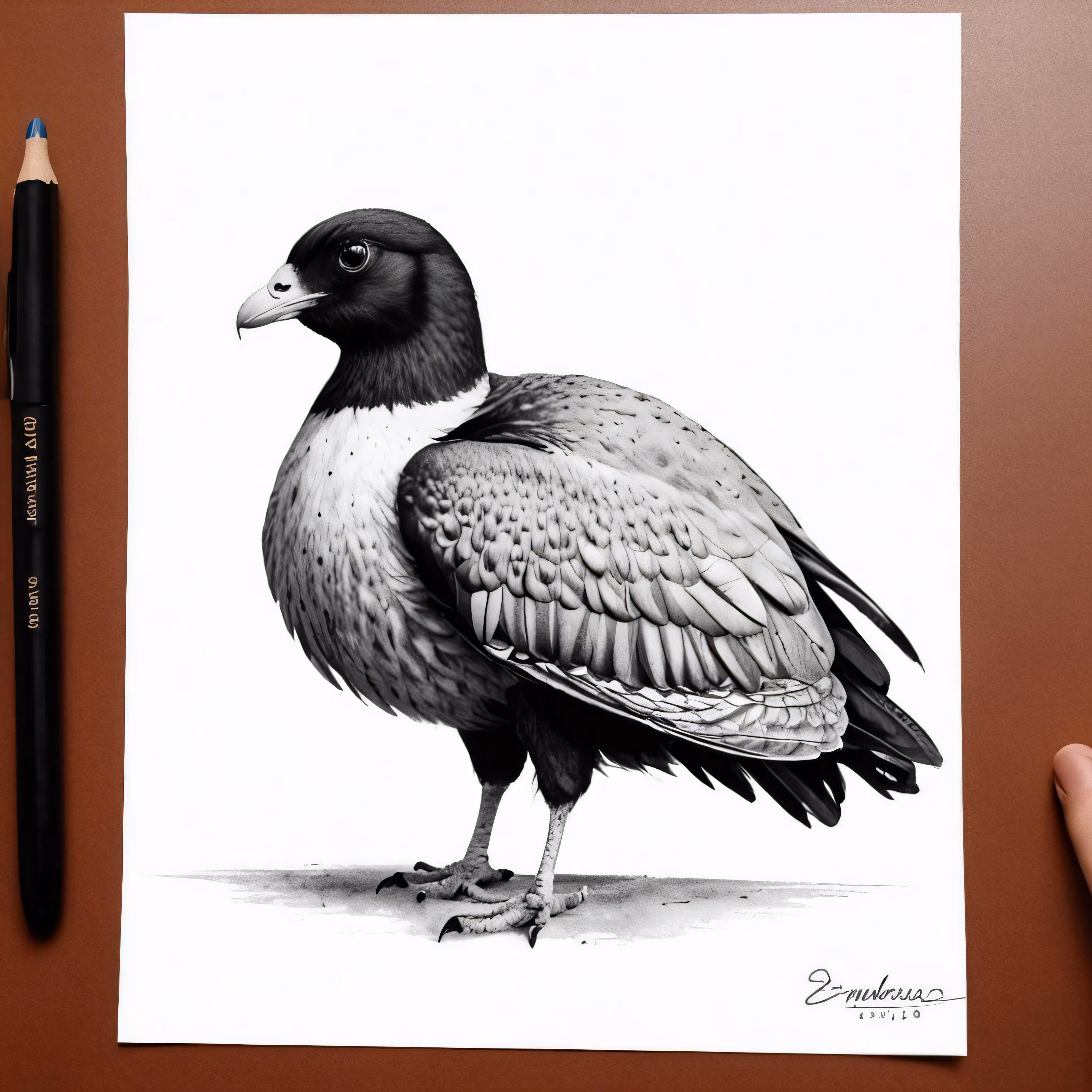 High resolution picture, free to use, a hand drawing a bird in black and white