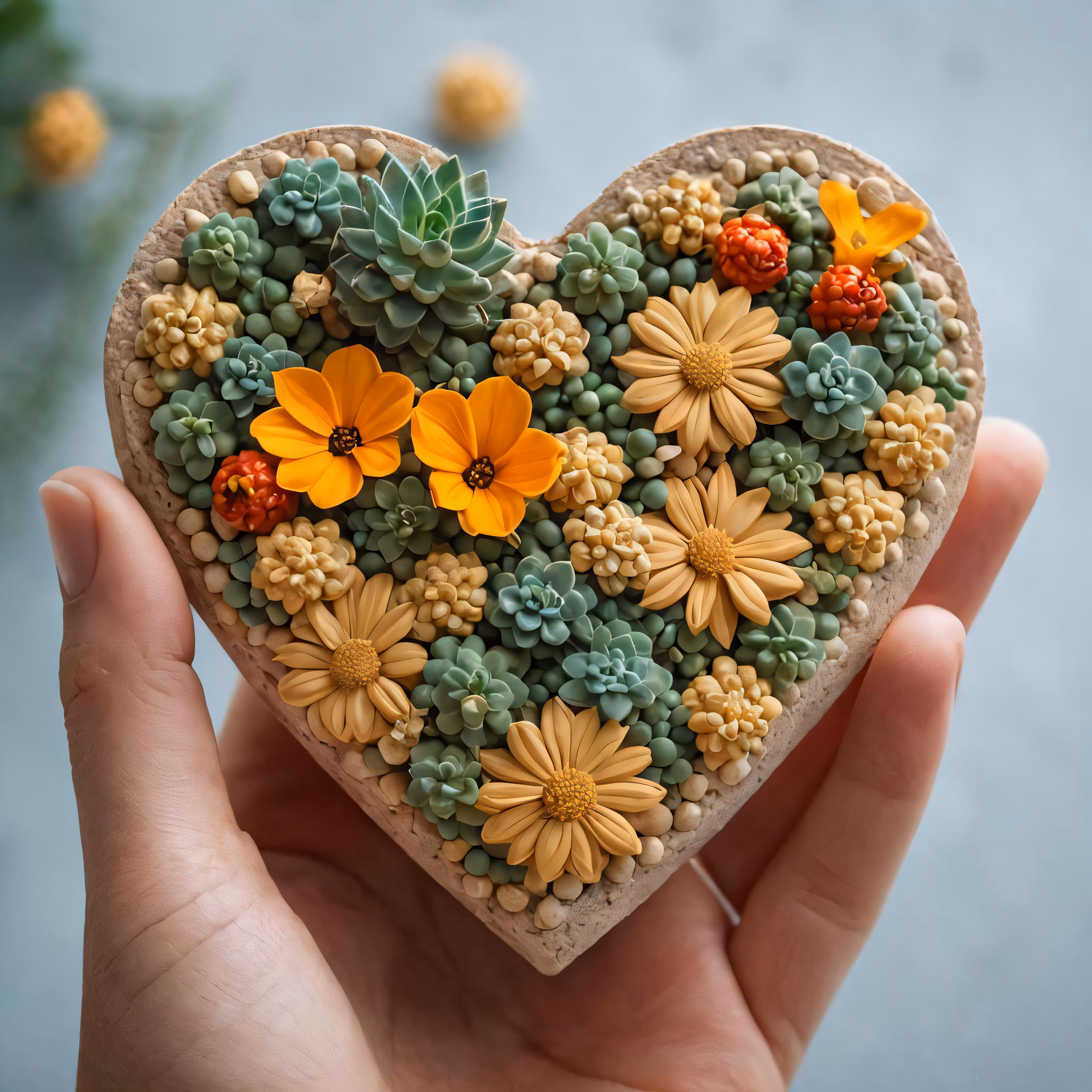 High resolution picture, free to use, a hand holding a heart shape planter with flowers in it
