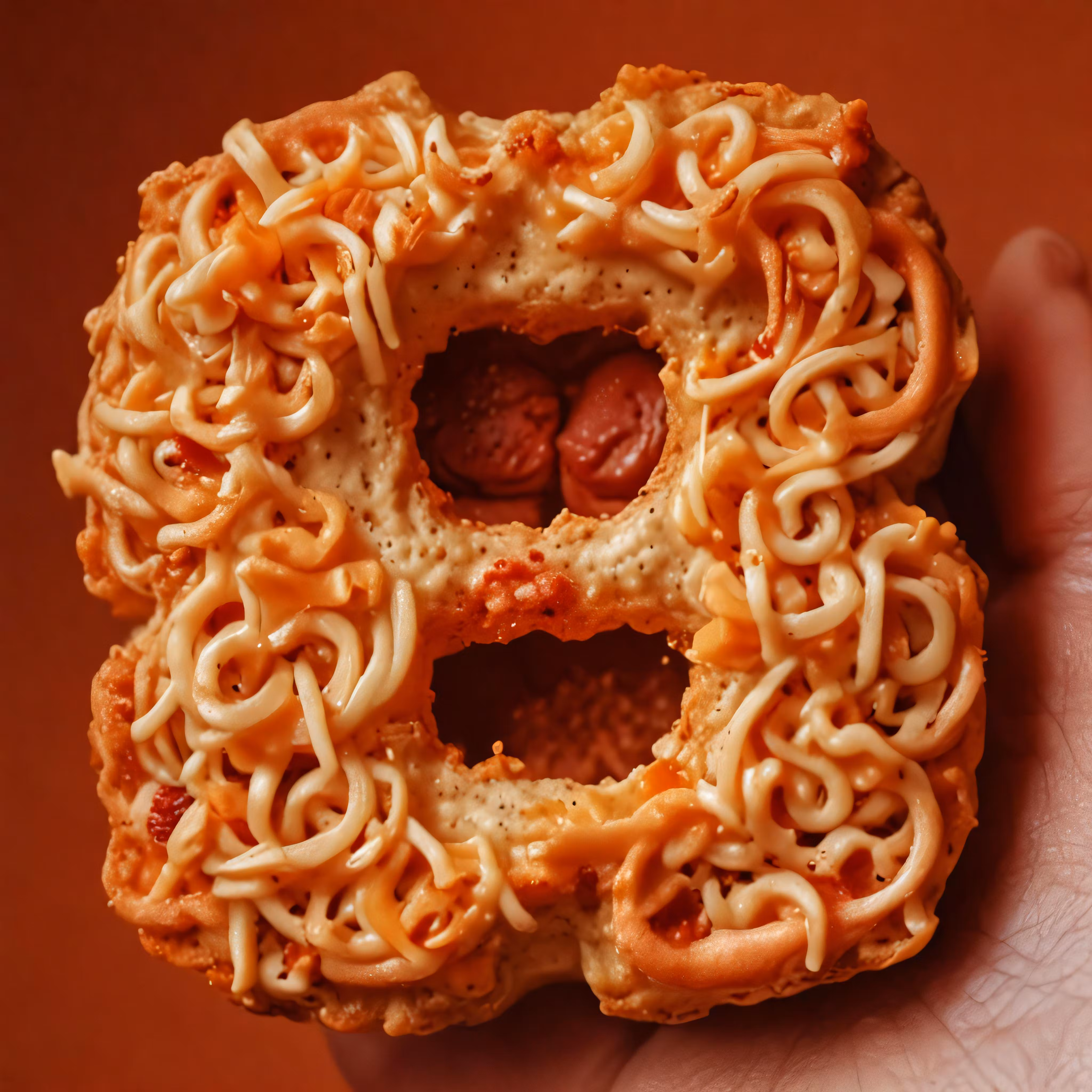High resolution picture, free to use, a hand is holding a pretzel with an oatmeal pattern and sausage on it