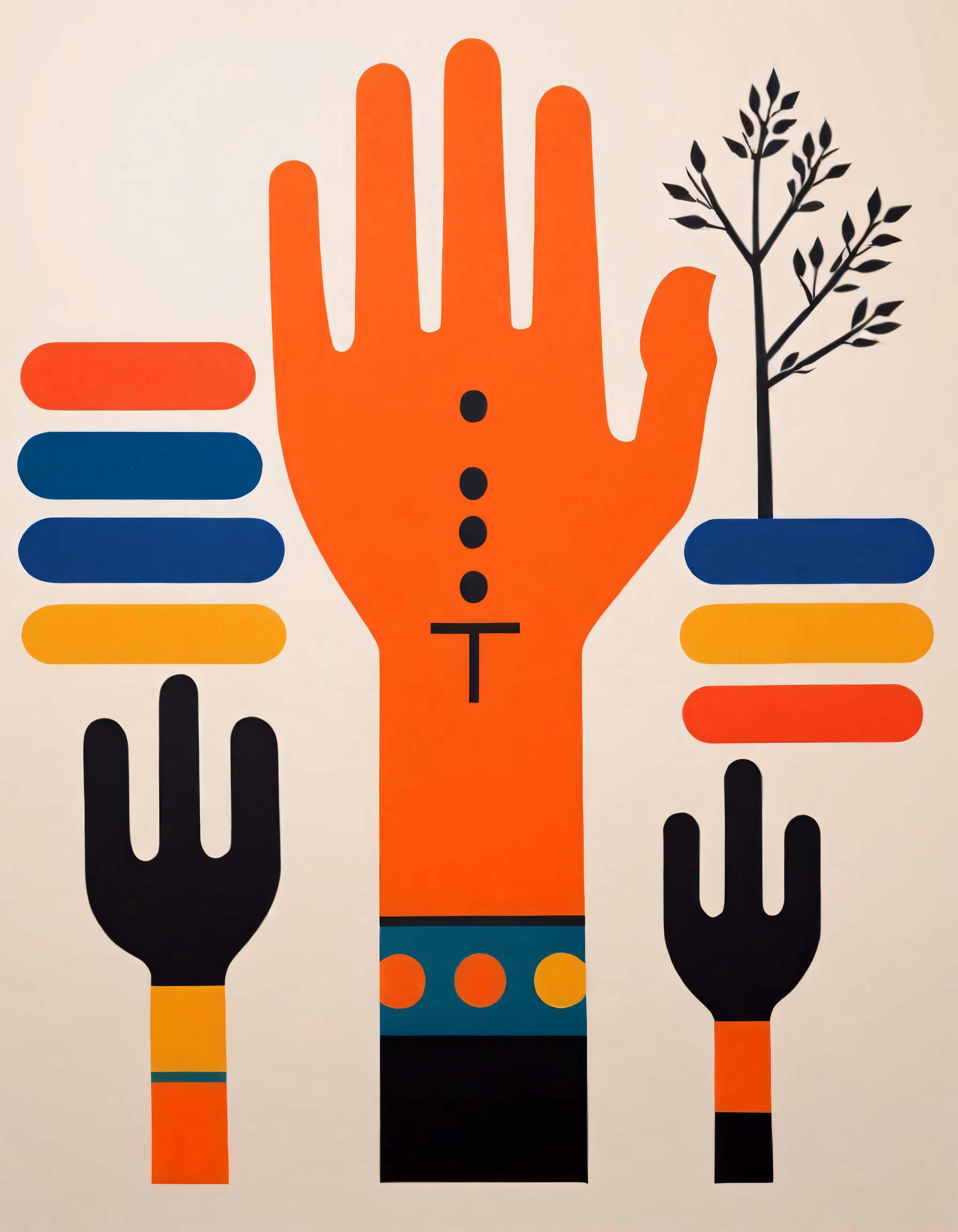 High resolution picture, free to use, a hand is holding onto several fingers that appear to be in front of an upward tree