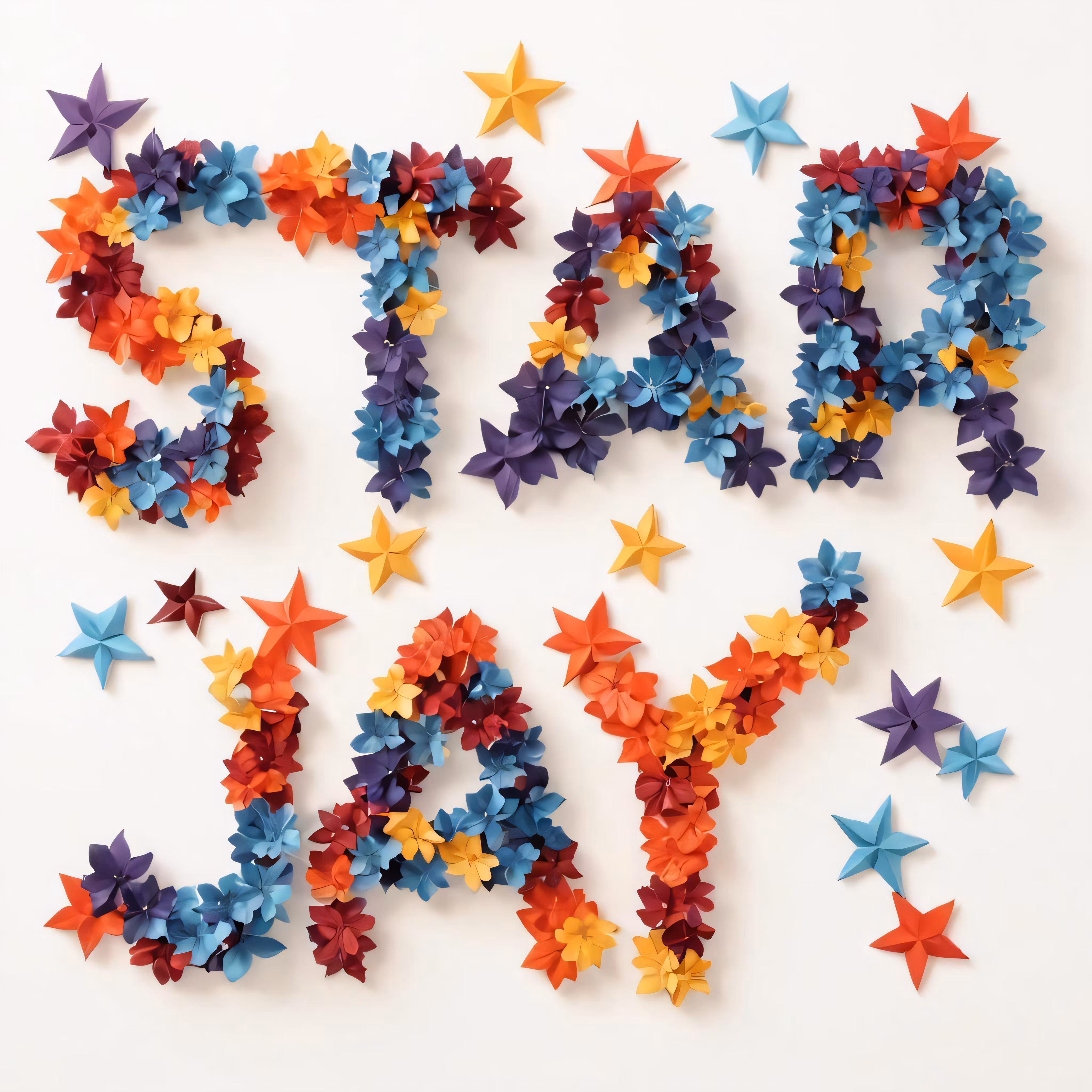 High resolution picture, free to use, a happy 4th birthday spelled out of star paper